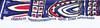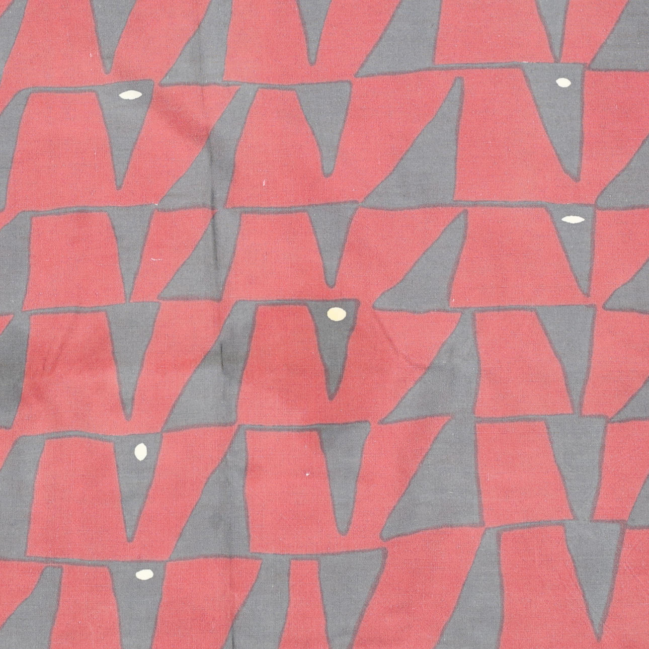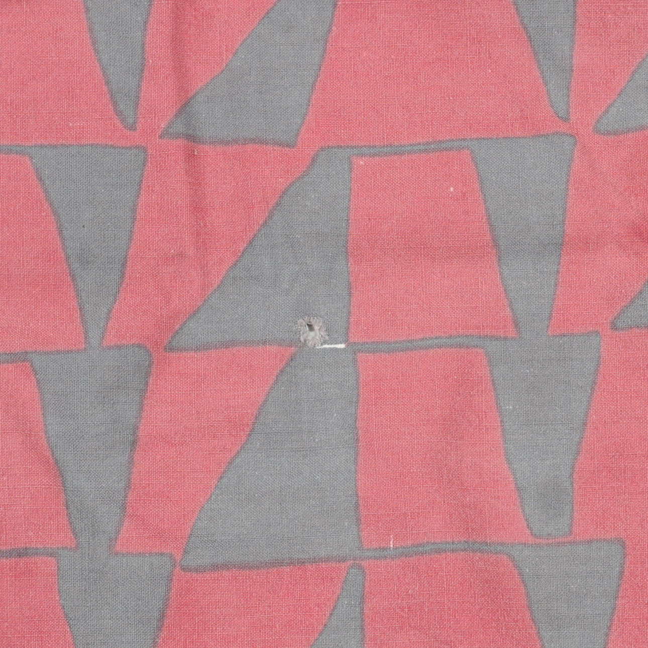 Bruksslitage, fläckar. Tyg "Vimplar" med ett hål. Ej fullständigt genomgångna.