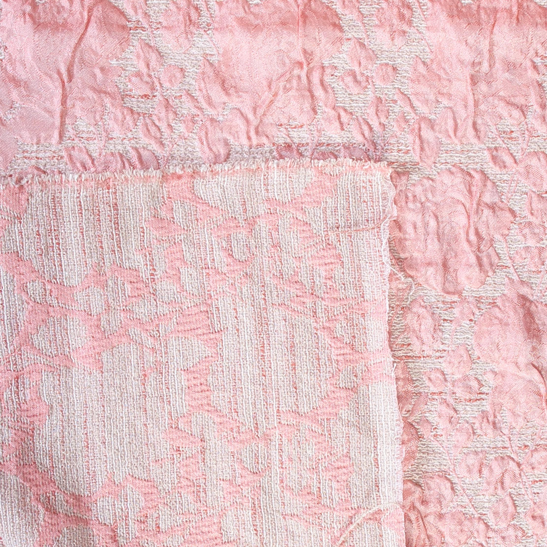 Vit och rosa botten i lite gles väv, rosa blommor med struktur i tunn crepe.