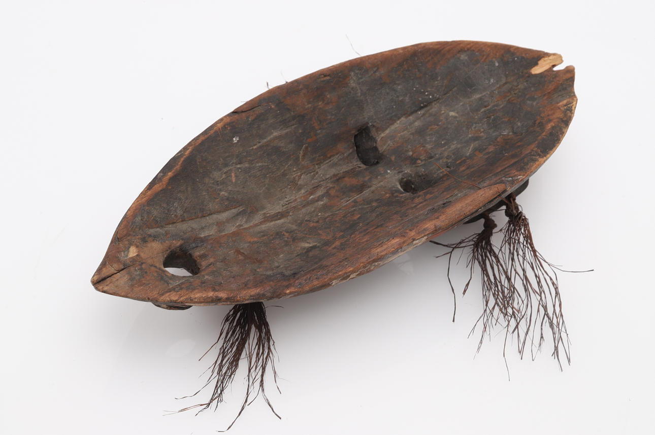 Bemålad trä, bastsnören, 41x17 cm, djup 7 cm.