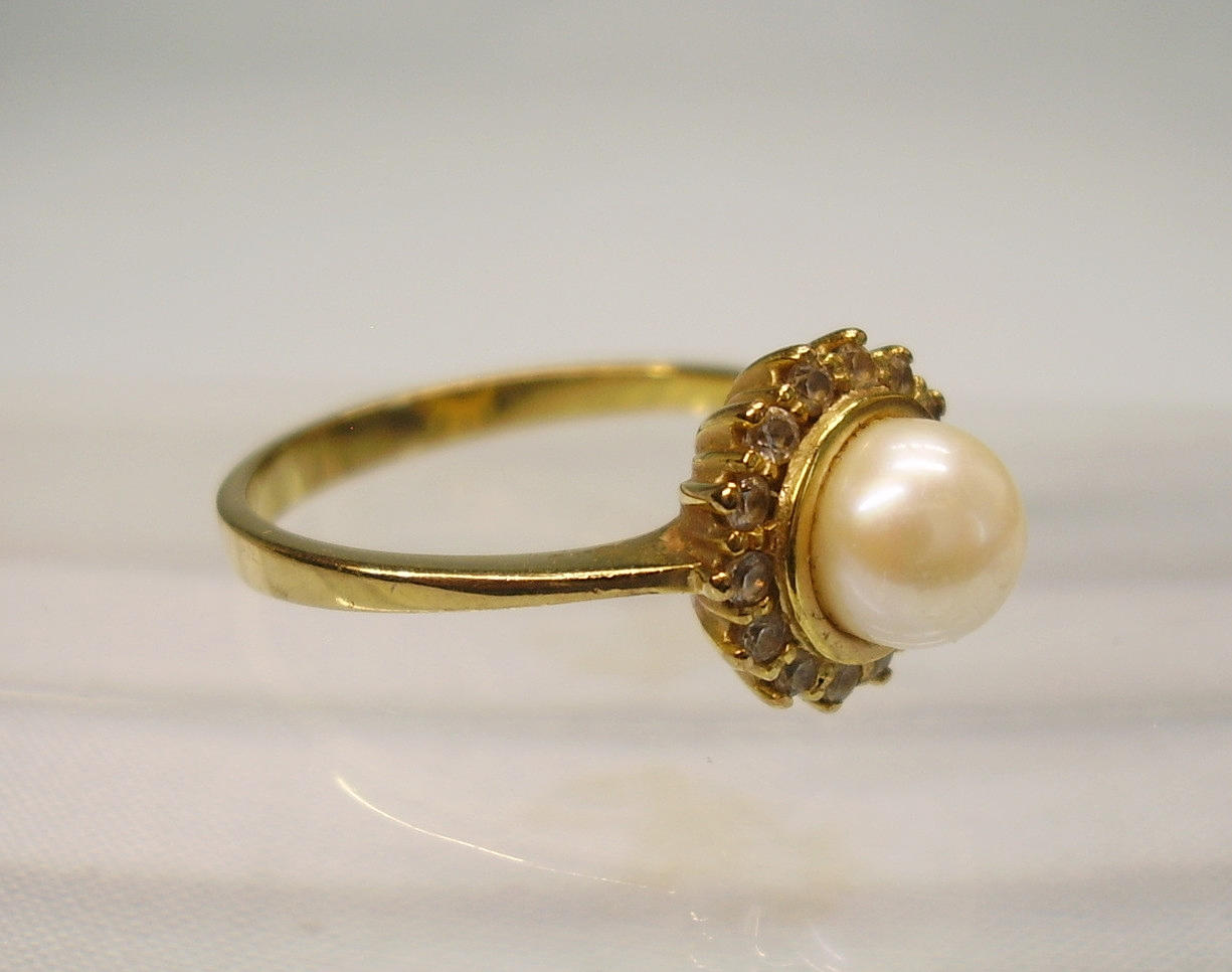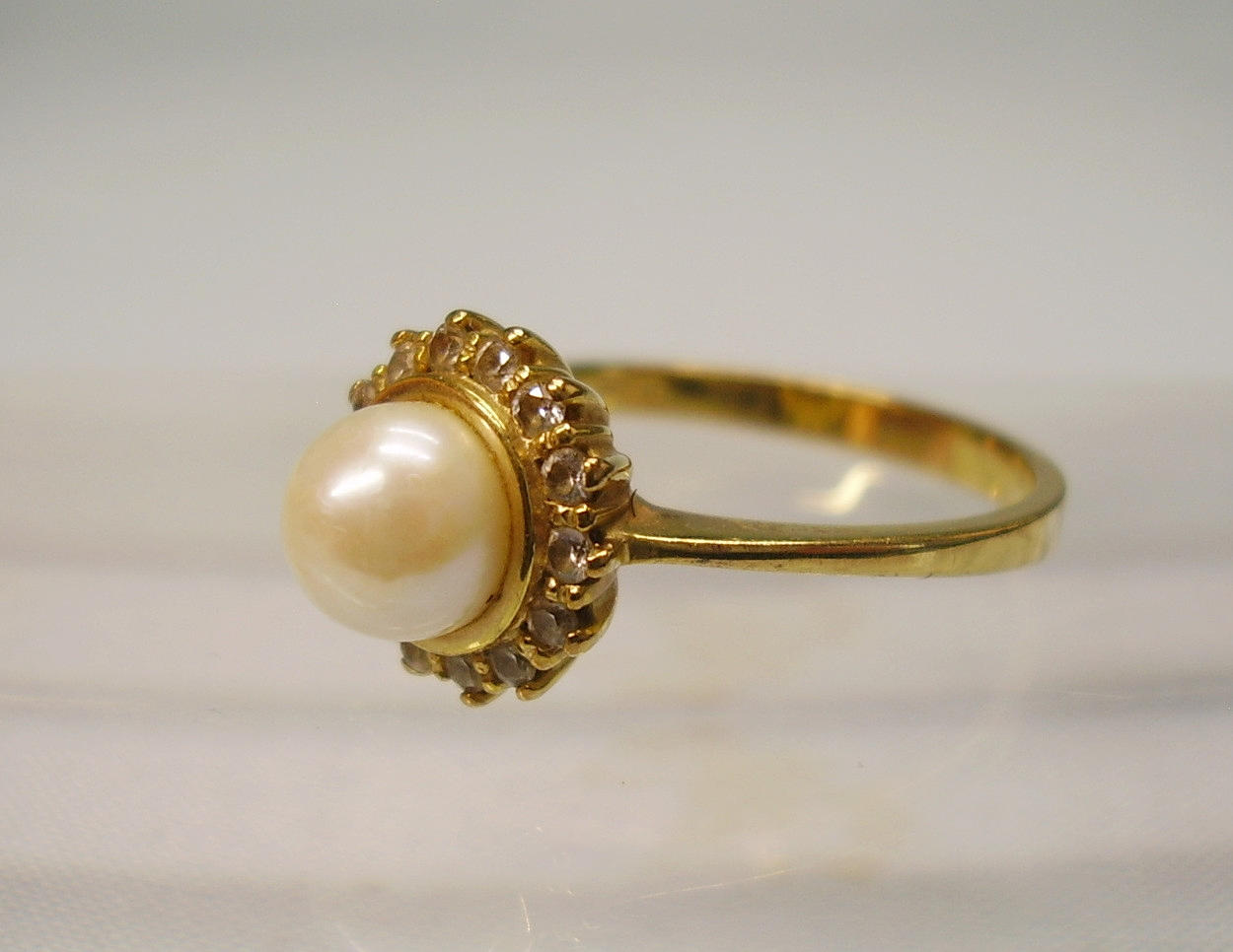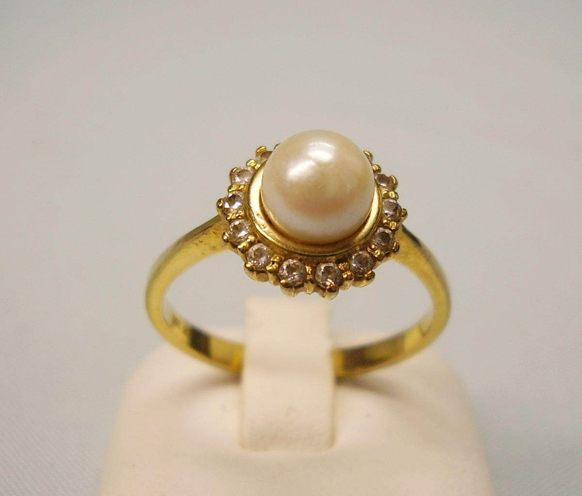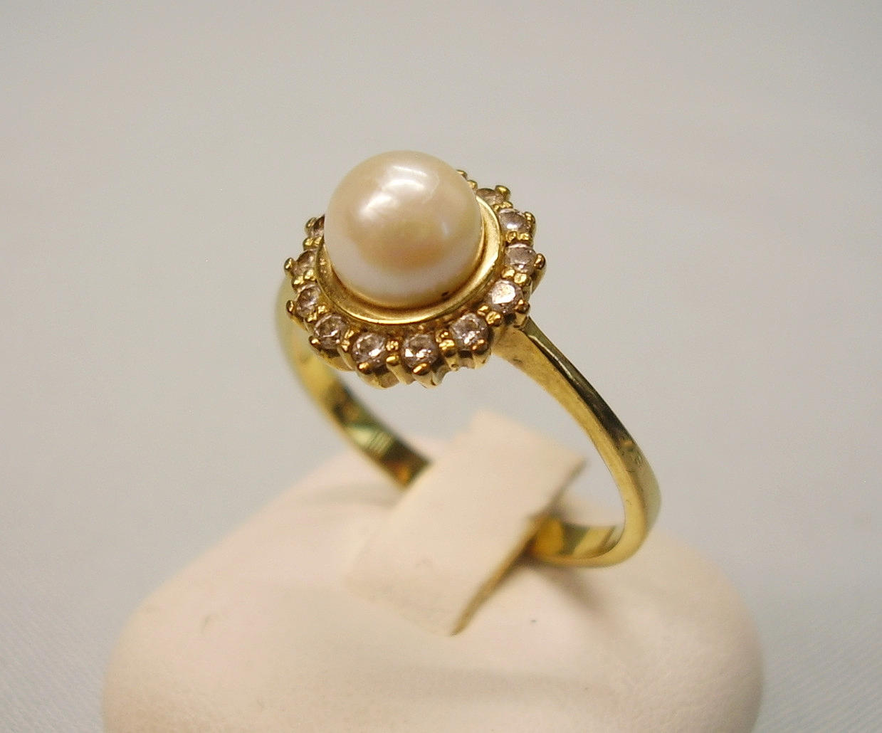 1869401. AKOYA PÄRLA RING, GULT GULD, 8 KARAT.