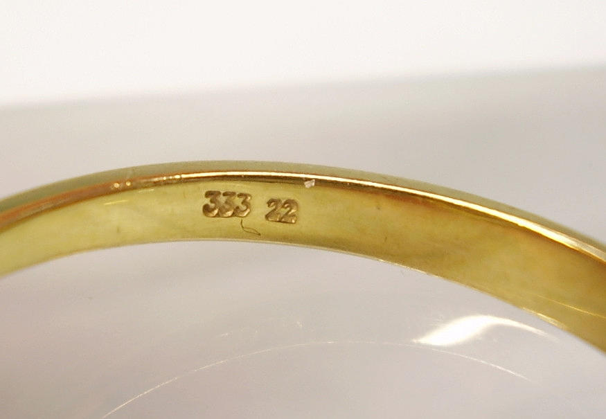 Den antika ringen är gjord av 333 = 8 karat gult guld och är stämplad.