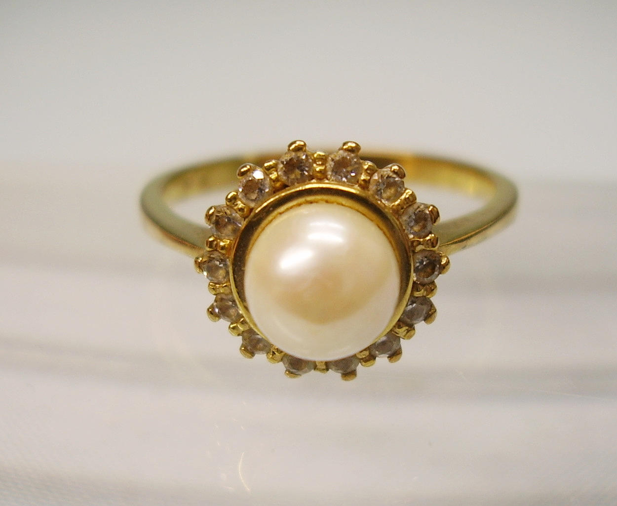 AKOYA PÄRLA RING, GULT GULD, 8 KARAT.
