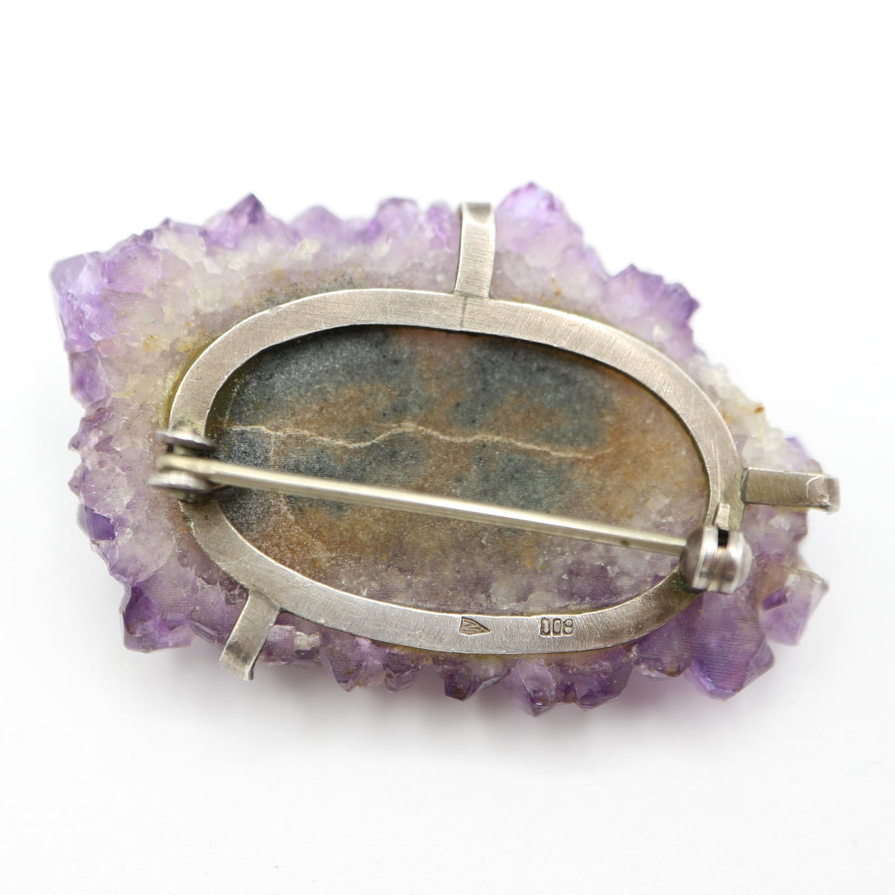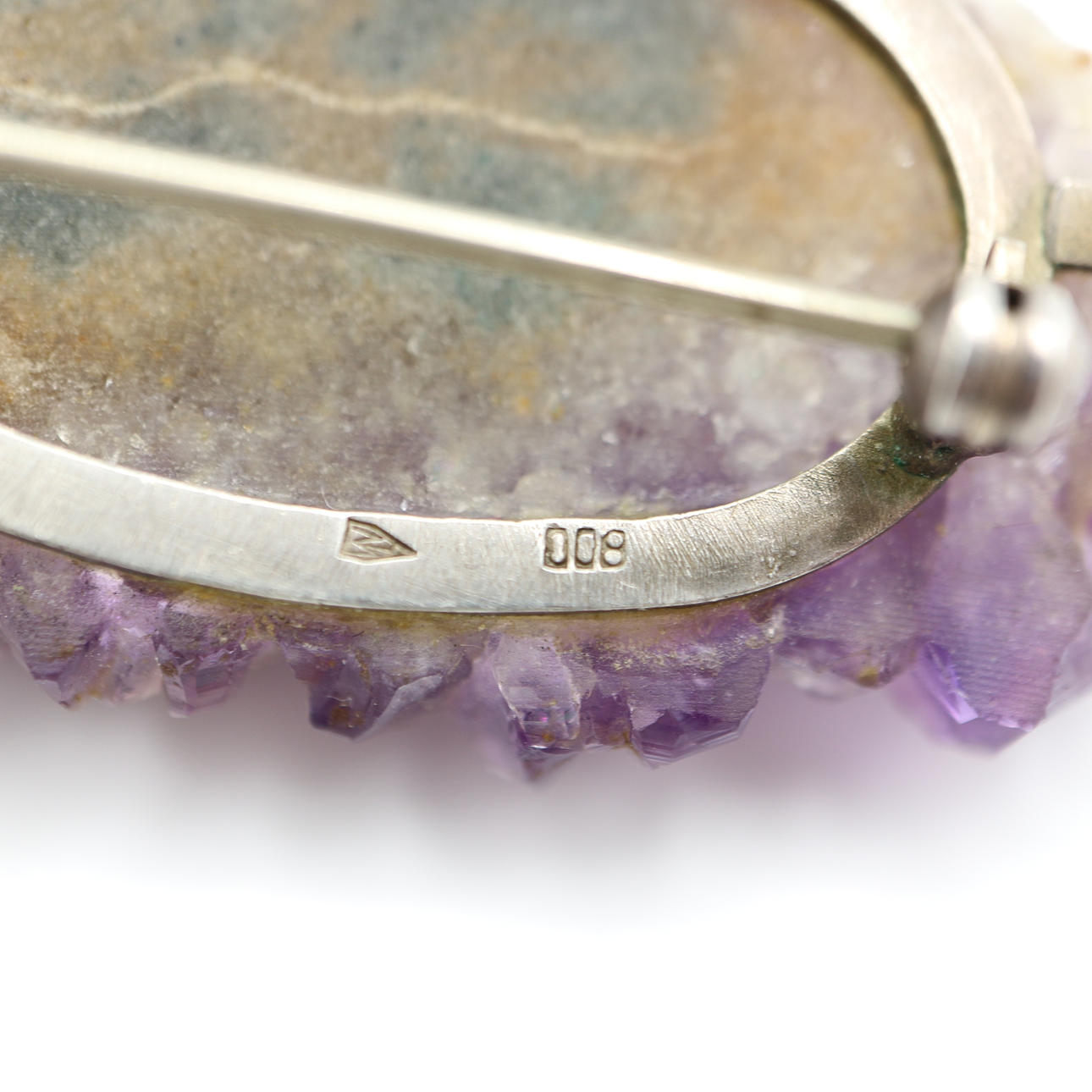 1872025. VINTAGE AMETIST ÄDELSTEN OCH SILVER BROSCH.