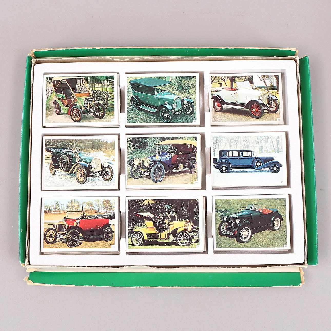 2 st memory spel, "Veteranbilar" Flygplan, modell, metall, trä, längd 33 cm.