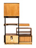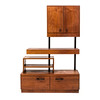Fanerat med teak, svärtade detaljer. Smidda handtag. Två lådor samt skåpsdörr. Bredd 100 cm, djup 34 cm, höjd 148,5 cm.