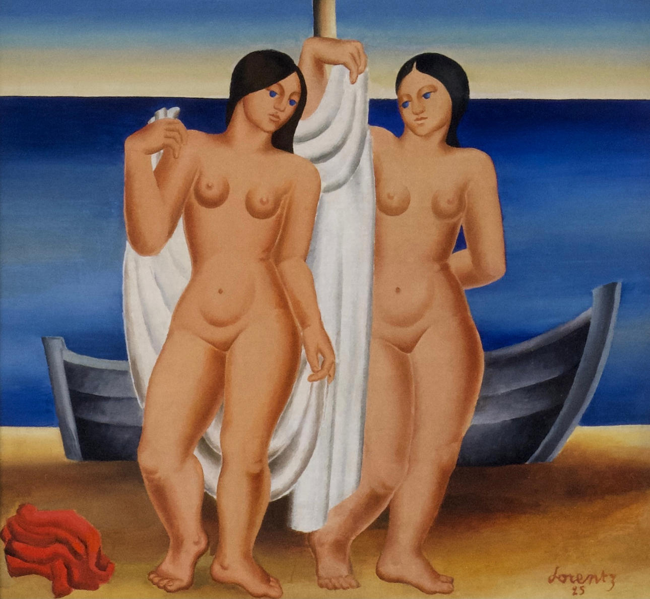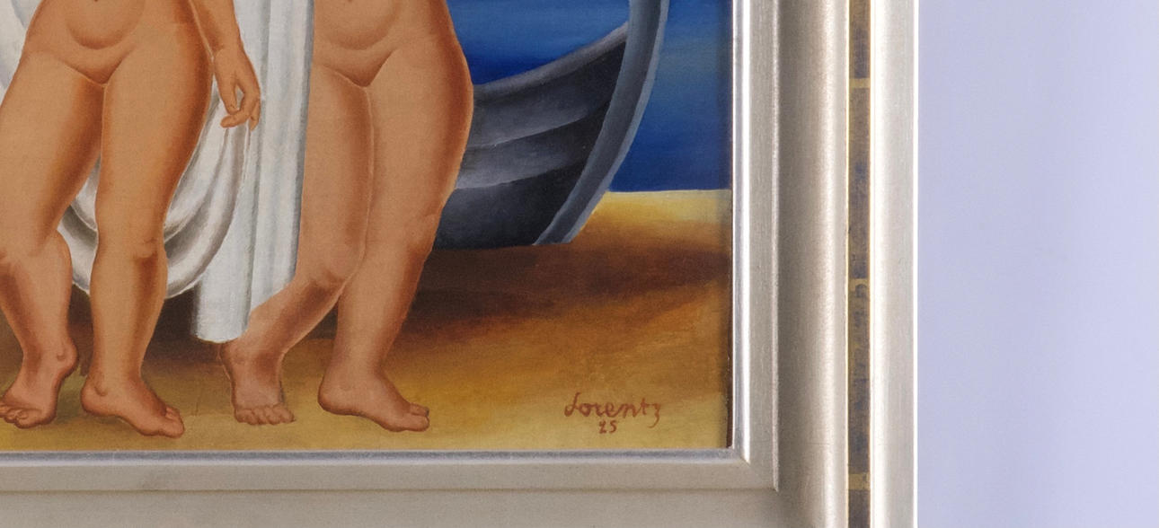Waldemar Lorentzon är tydligt influerad av sin lärare och målar de här åren flera verk som ligger denne nära. Auktionens målning är ett bra exempel på detta där de nakna kvinnofigurerna är uppbyggda på ett sätt som var högsta franska mode inom konsten år 1925. I ett brev daterat 15 november 1925 detta år skriver Lorentzon till Egon Östlund efter att ha återvänt till Paris efter en tid i Sverige: