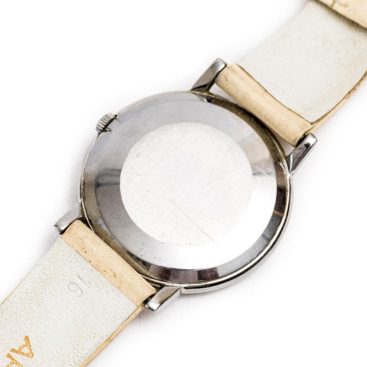 Stål, manuell, plexiglas, monocoque, lackat läderarmband, Omega-spänne, boettens diameter 31 mm.