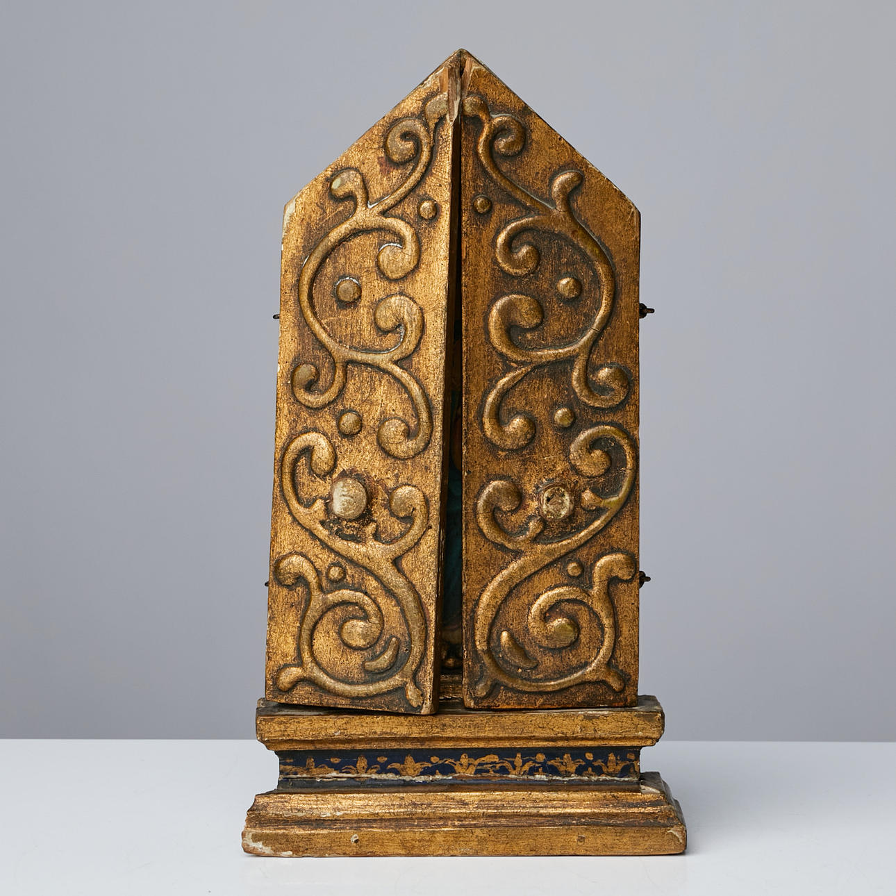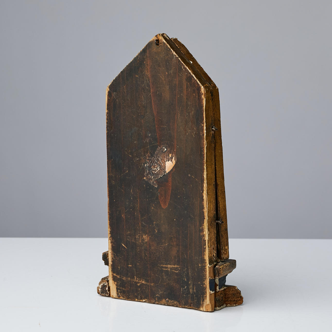 bemålat tryck, trä, krediterat och förgyllt, höjd ca 24 cm.