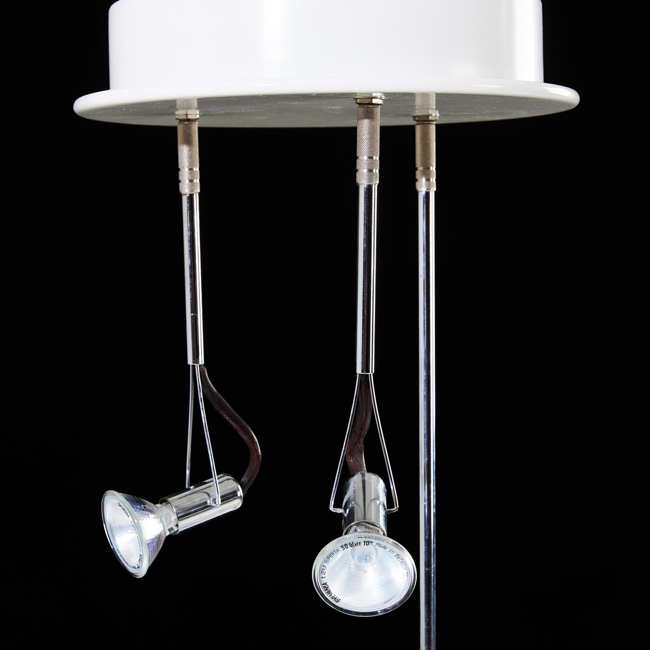 Vitlackerad metall samt krom, 3 ljuskällor, höjd 64, diameter 27 cm.