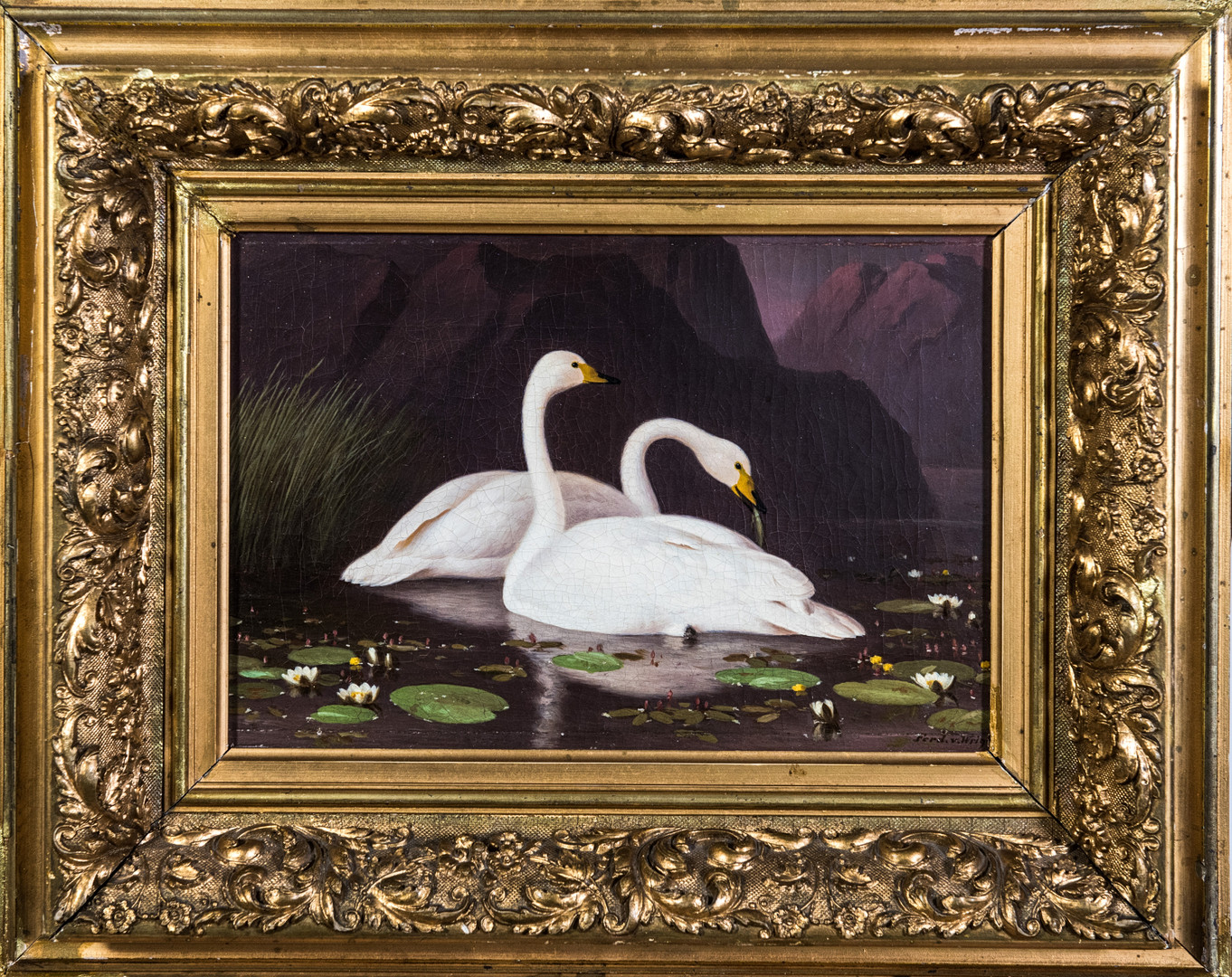 1886212. FERDINAND VON WRIGHT. svanar, signerad, olja på duk.