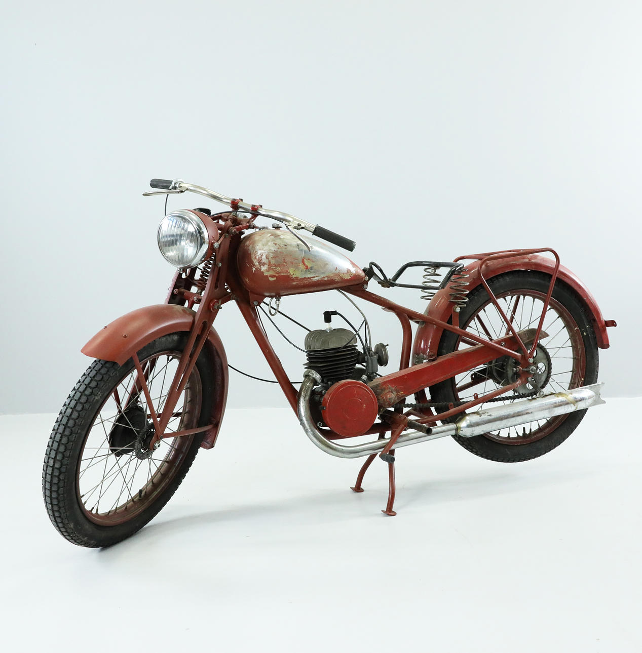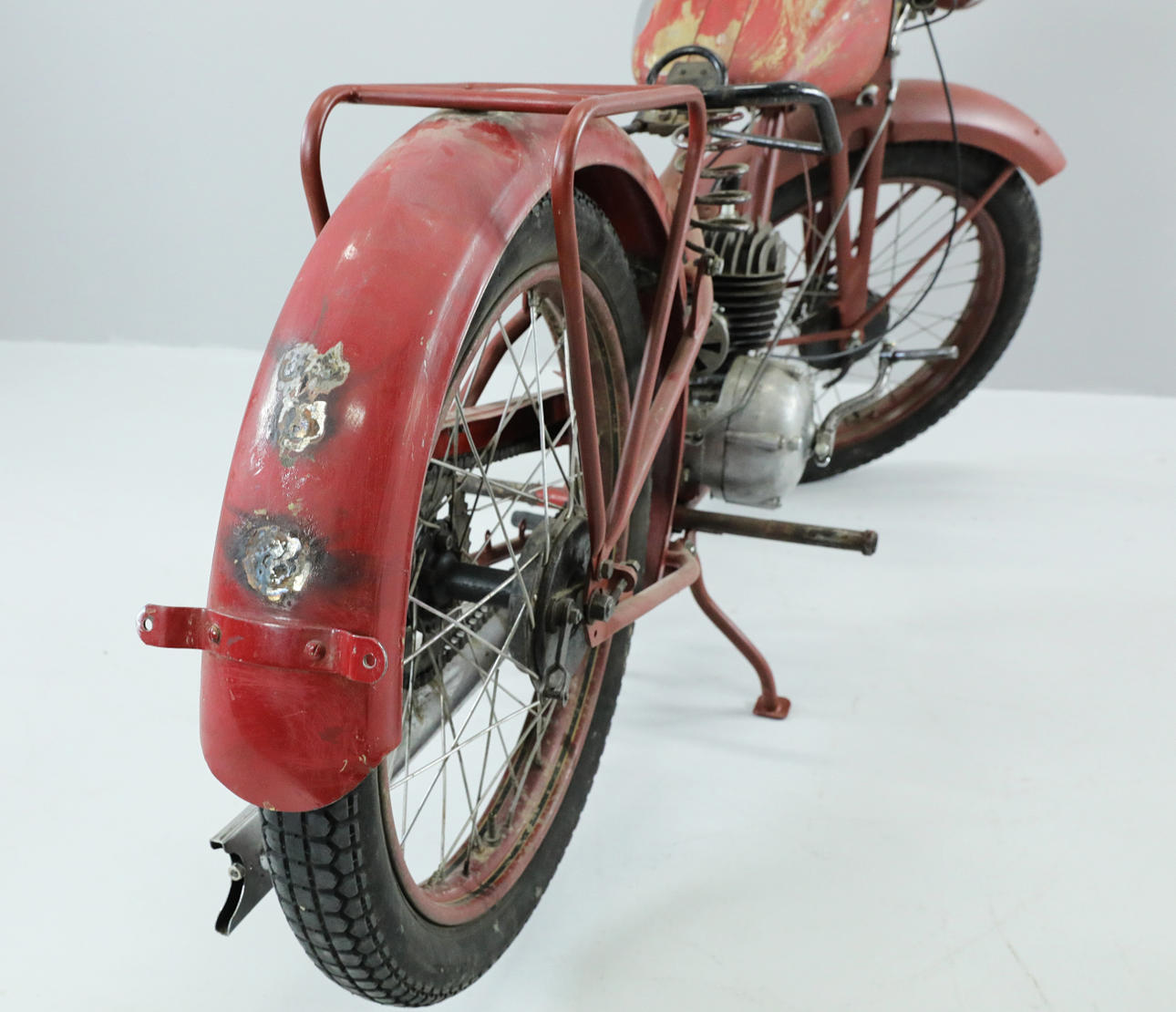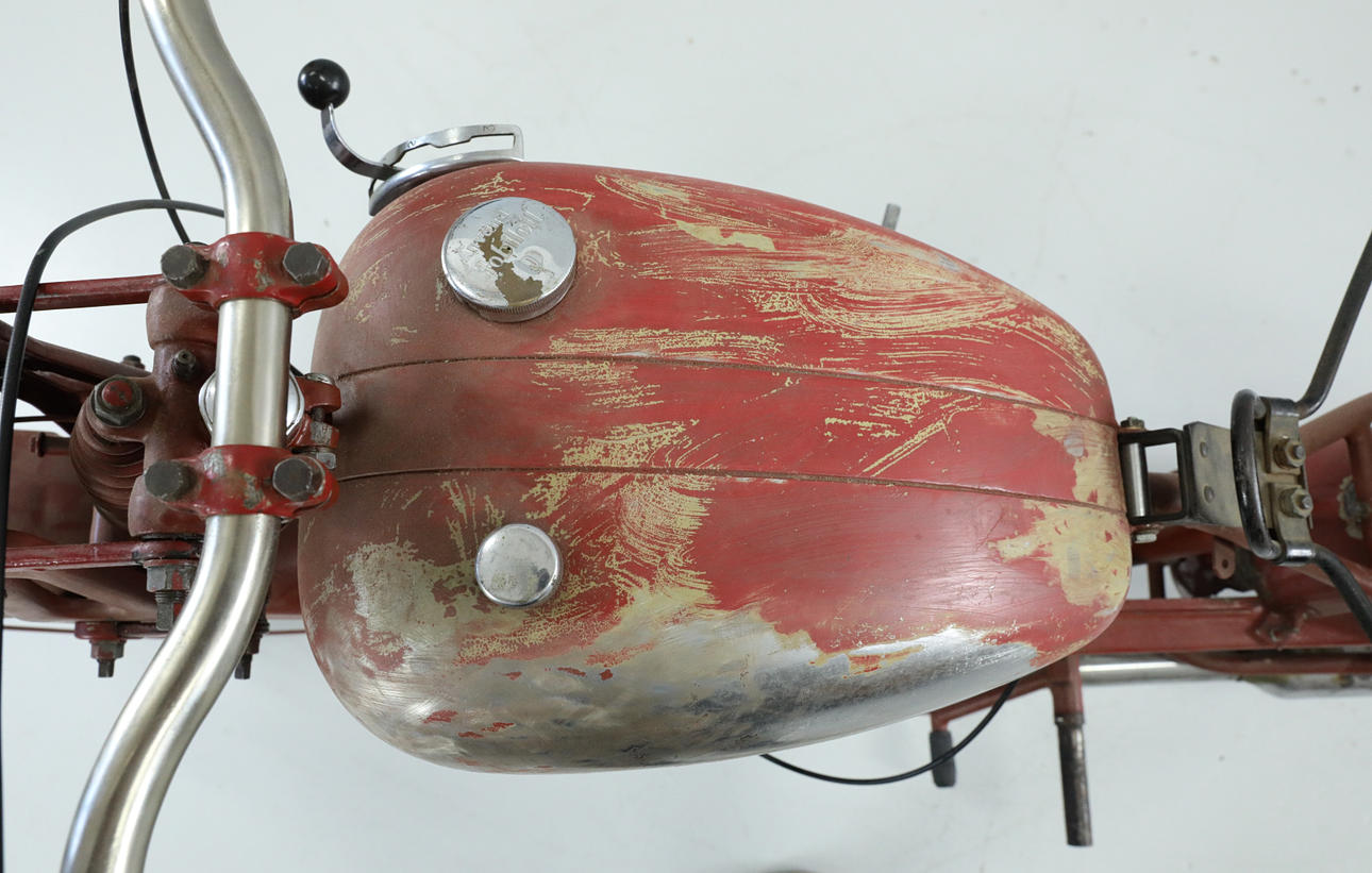 Motorn går runt, elen bör fixas med tennspole bla. Sadel saknas, koppling fungerar, växlar ska fungera. Hälsinglands Auktionsverk säljer motorcykeln i befintligt skick, ingen funktionsgaranti lämnas.