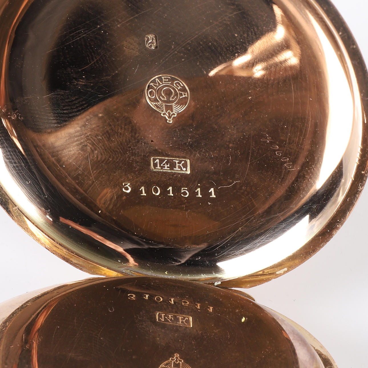 Fickur med boett i 14K rödguld Boett stämplad Omega, 14K Totalvikt 96,53 gram.