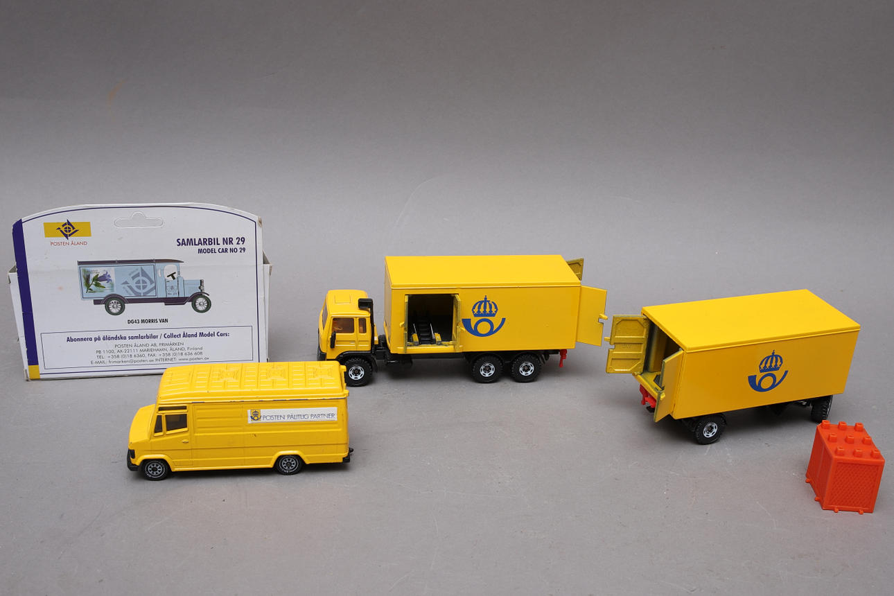Mercedes-Benz 809D, ''Posten pålitlig partner'', Siku, ca 11.5 cm lång.