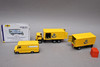 Lastbil med släp, Volvo F12 turbo 6, Siku, ca 30 cm lång inkl. släp, med en tillhörande paketbur.