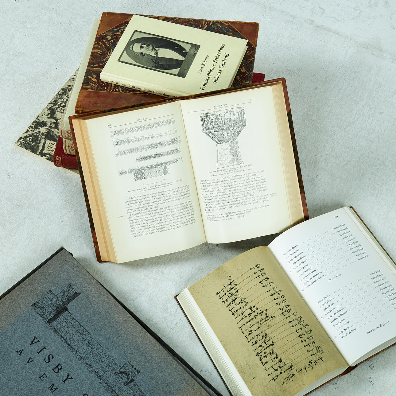 BÖCKER samt PLANSCHER, 10 st, Gotlandica, inbundna.