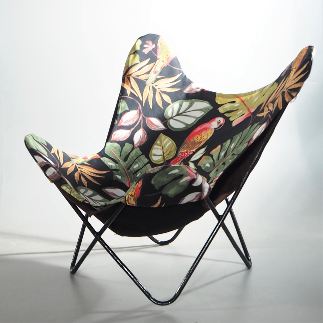 Original klädsel i fuskmocca och ett nyare bomullstyg. Rygghöjd 80 cm, bredd 83 cm.