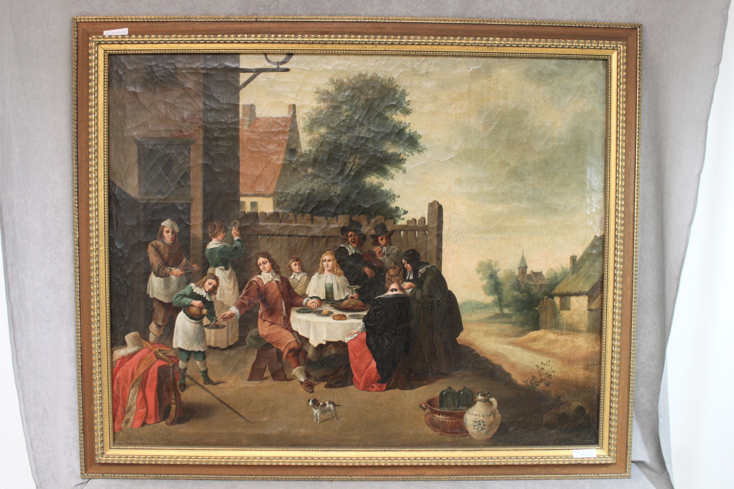 189453. HOLLÄNDISCHER MEISTER DES 19. JH. EFTER. OLJA PÅ DUK, NERE TILL HÖGER REF. TENIERS.