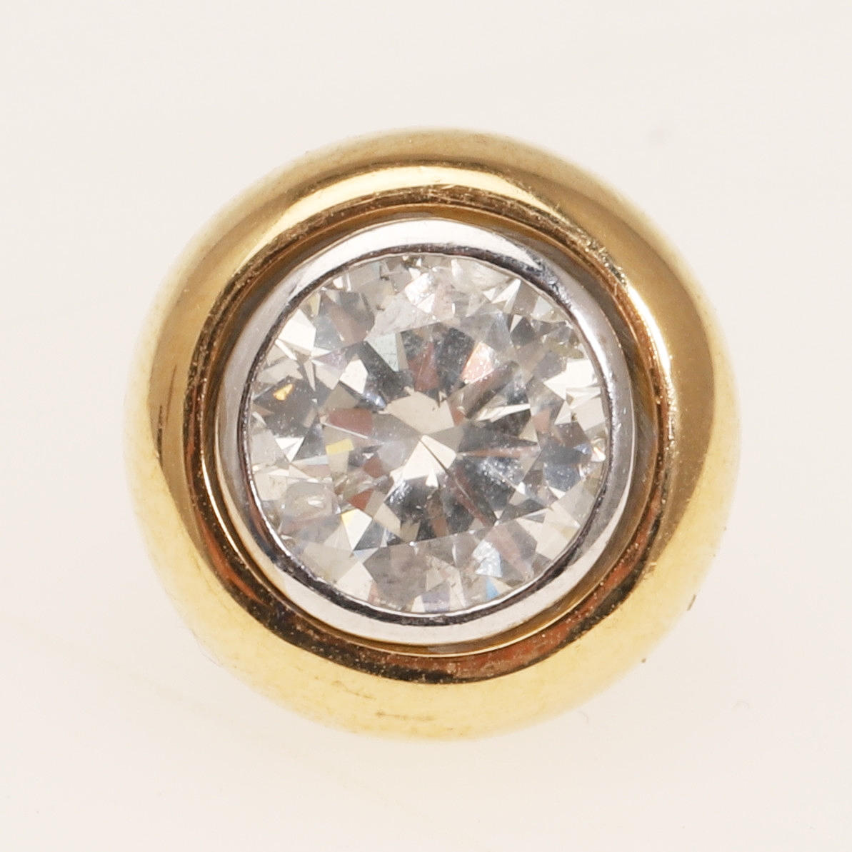 ÖRHÄNGEN av 750 gult guld, vardera med en diamant, vardera ca. 1 ct. Färg: Wesselton (H), renhet: P, Ø 11mm, stämplad, legering testad, vikt: 9,91 g.