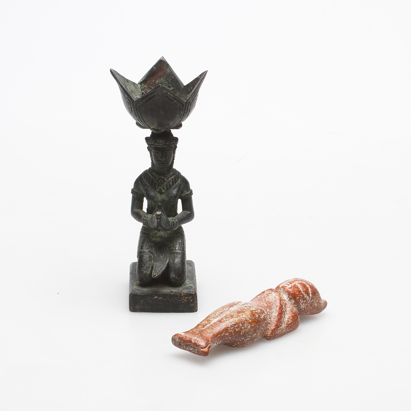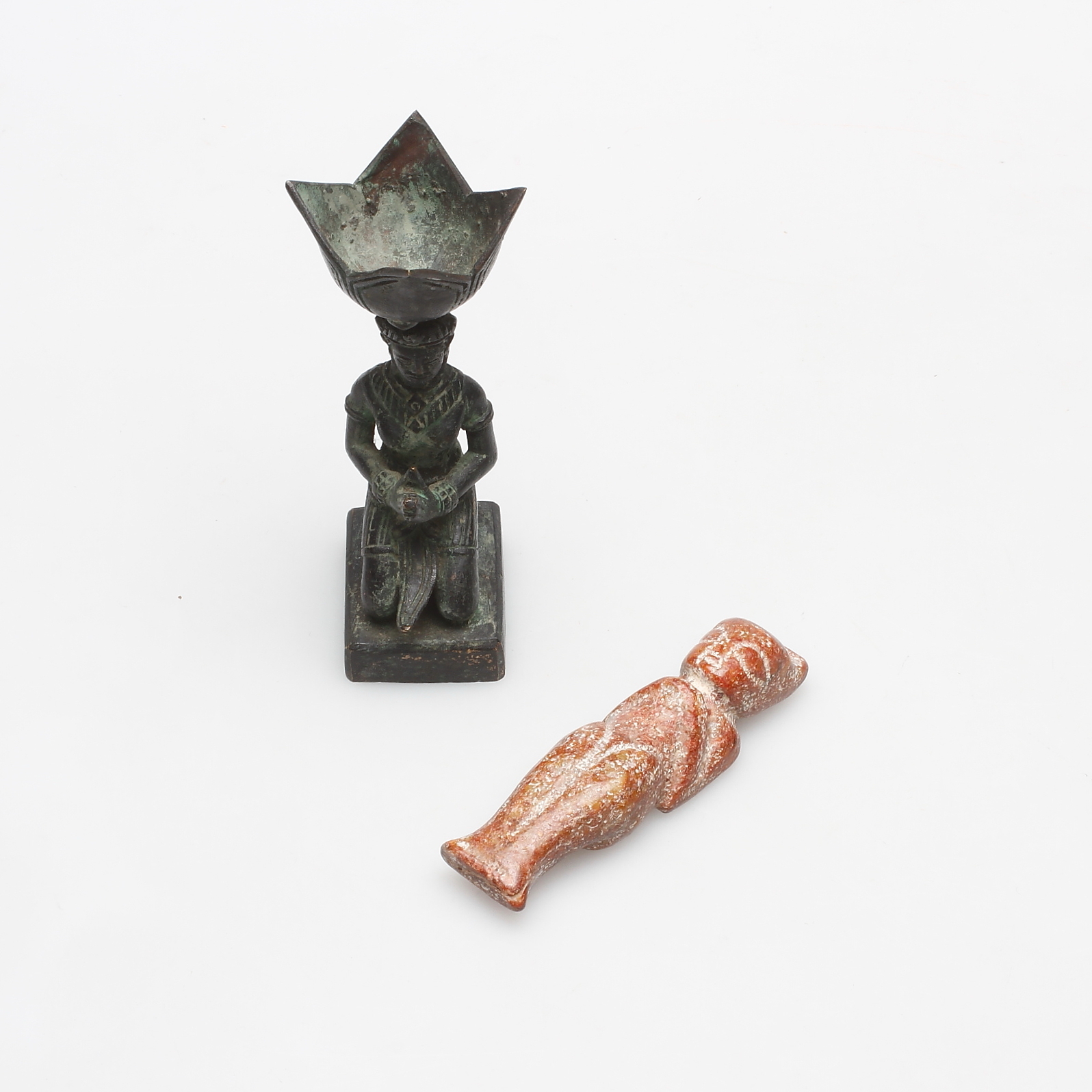 189689. ORIENTALISKA FÖREMÅL, 2 delar, sten och metall.