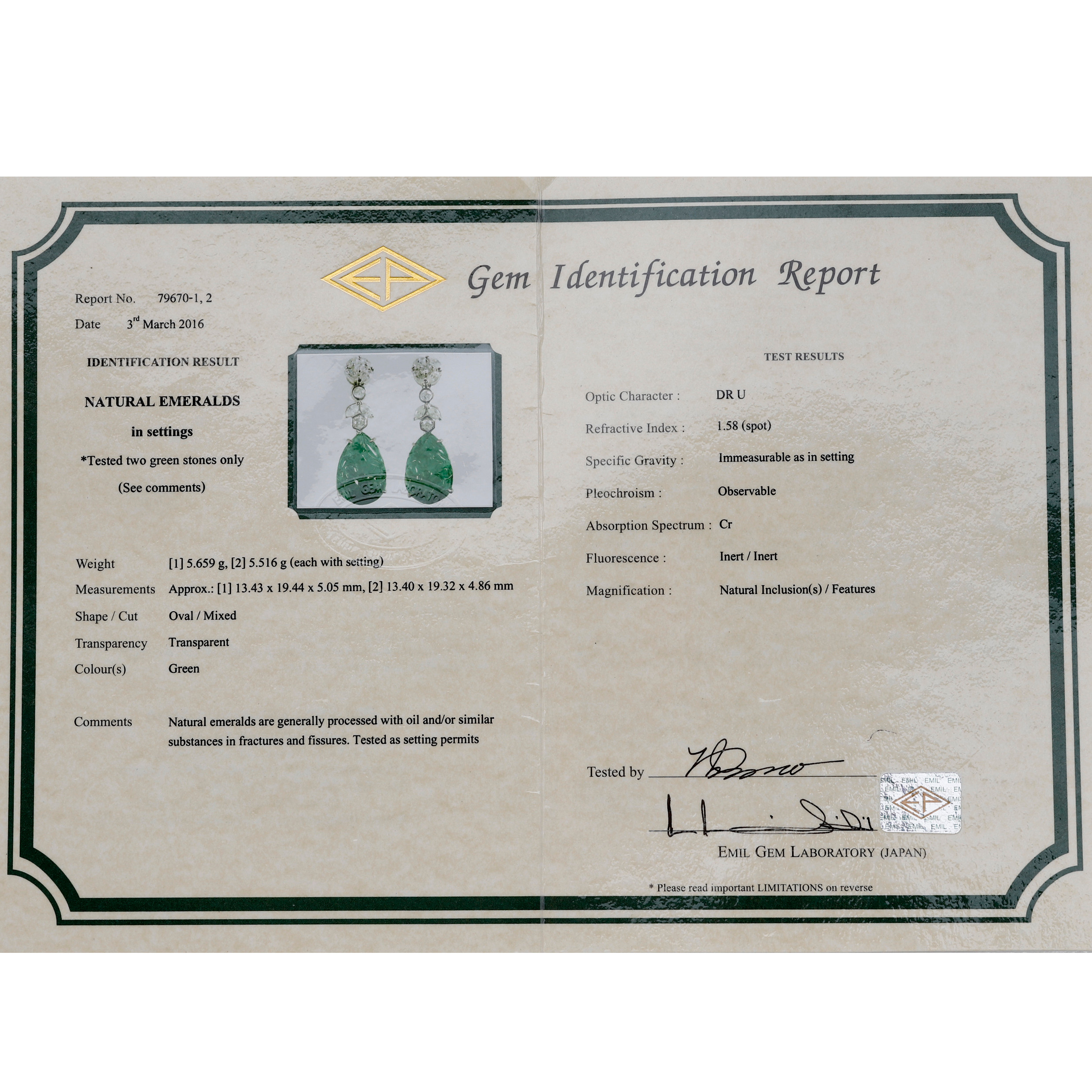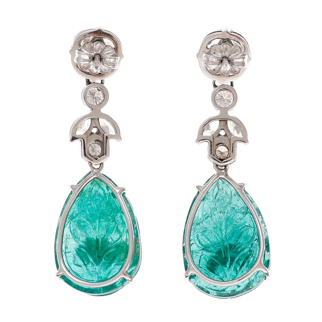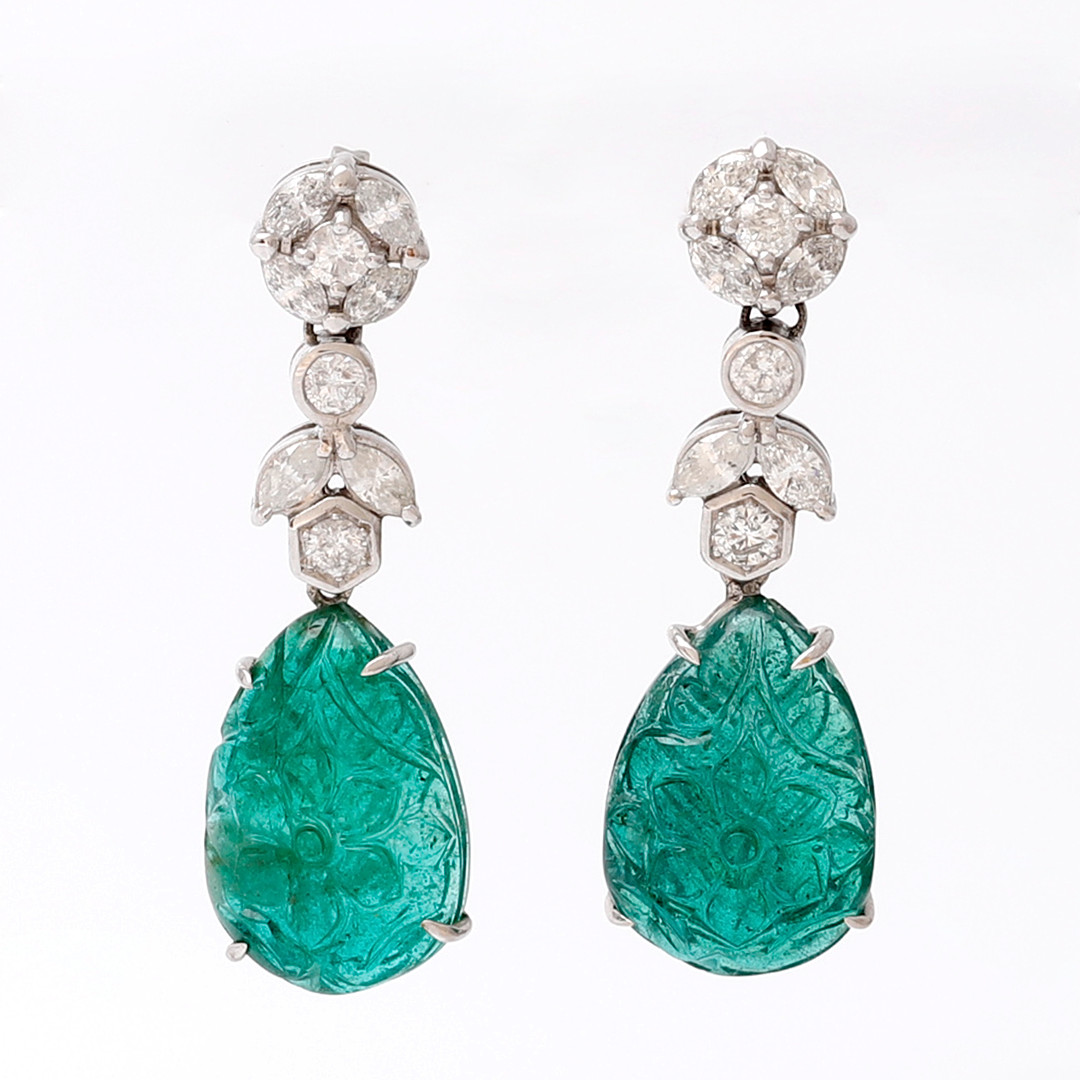 98. 1897276. Långa smaragd- och diamantörhängen.