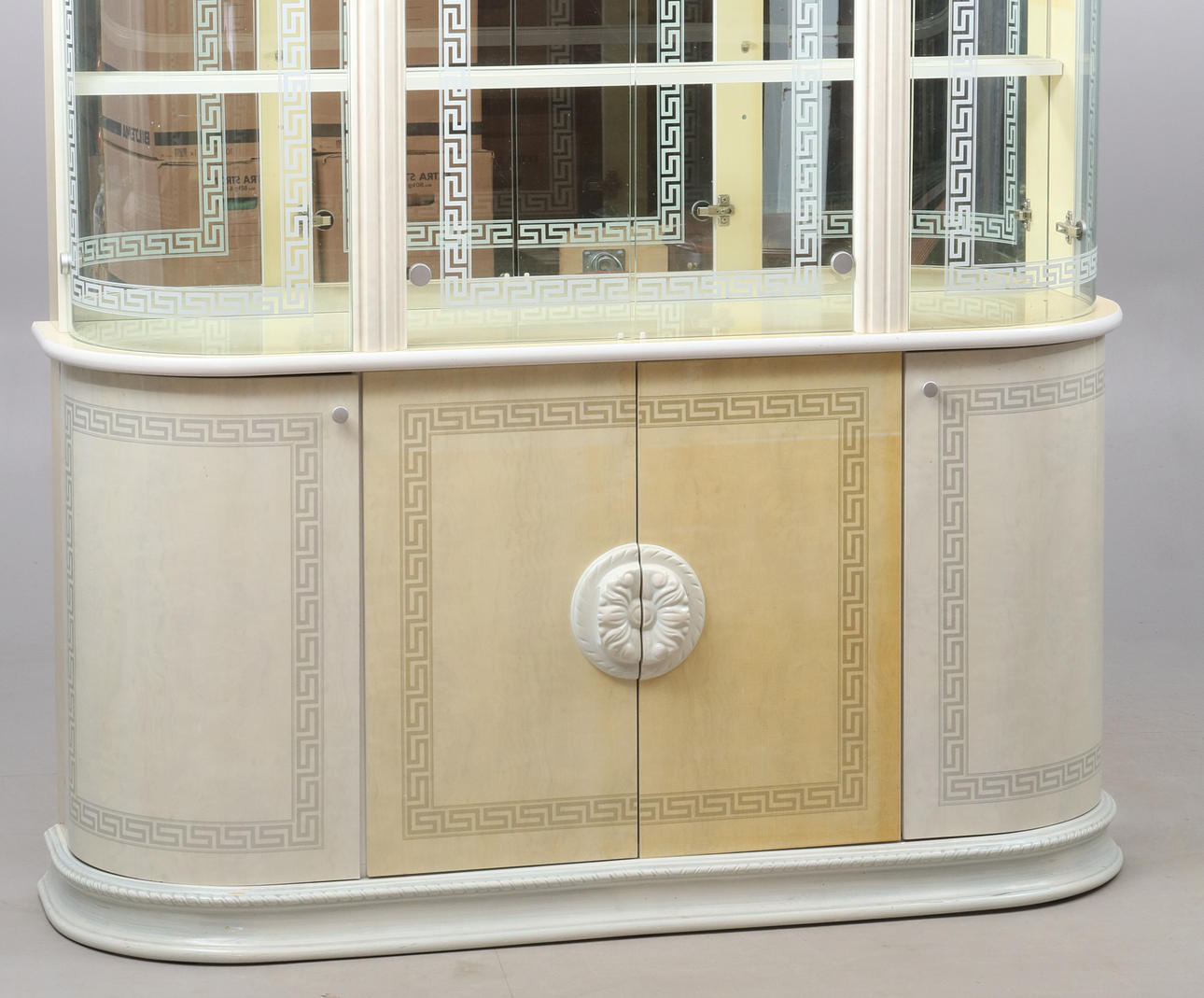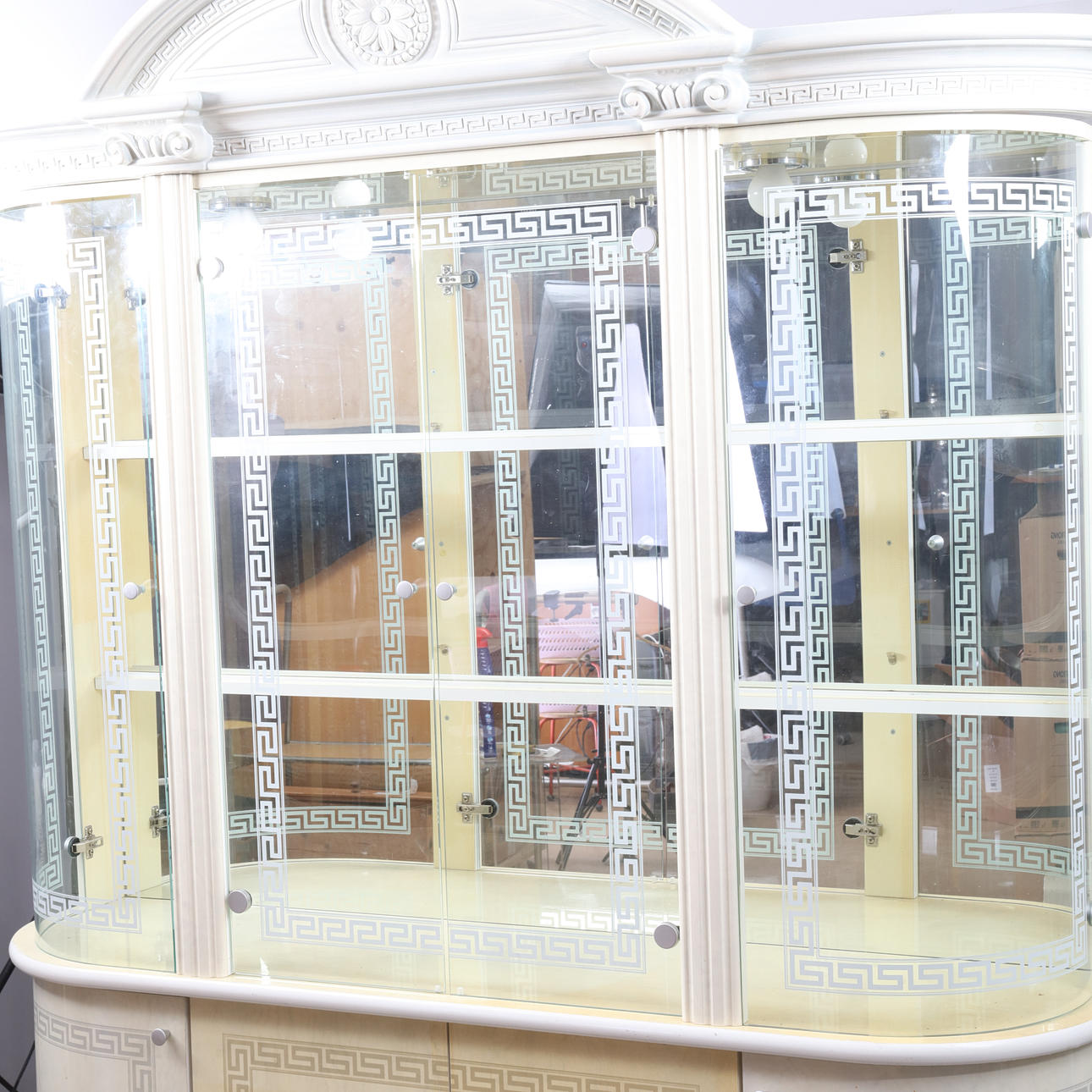 Skåp med belysning Höjd ca 223 cm Bredd ca 165 cm Djup ca 40 cm Ett hyllplan i glas.