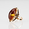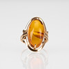 Oval bärnsten 22 x 11 mm, 14K guld, storlek 17,75, vikt ca 4,5 g.