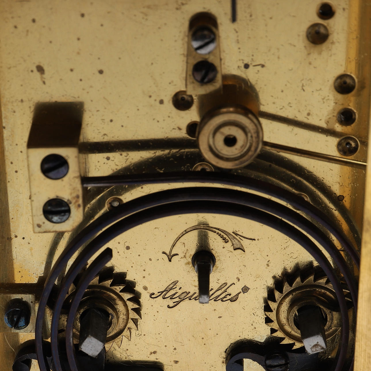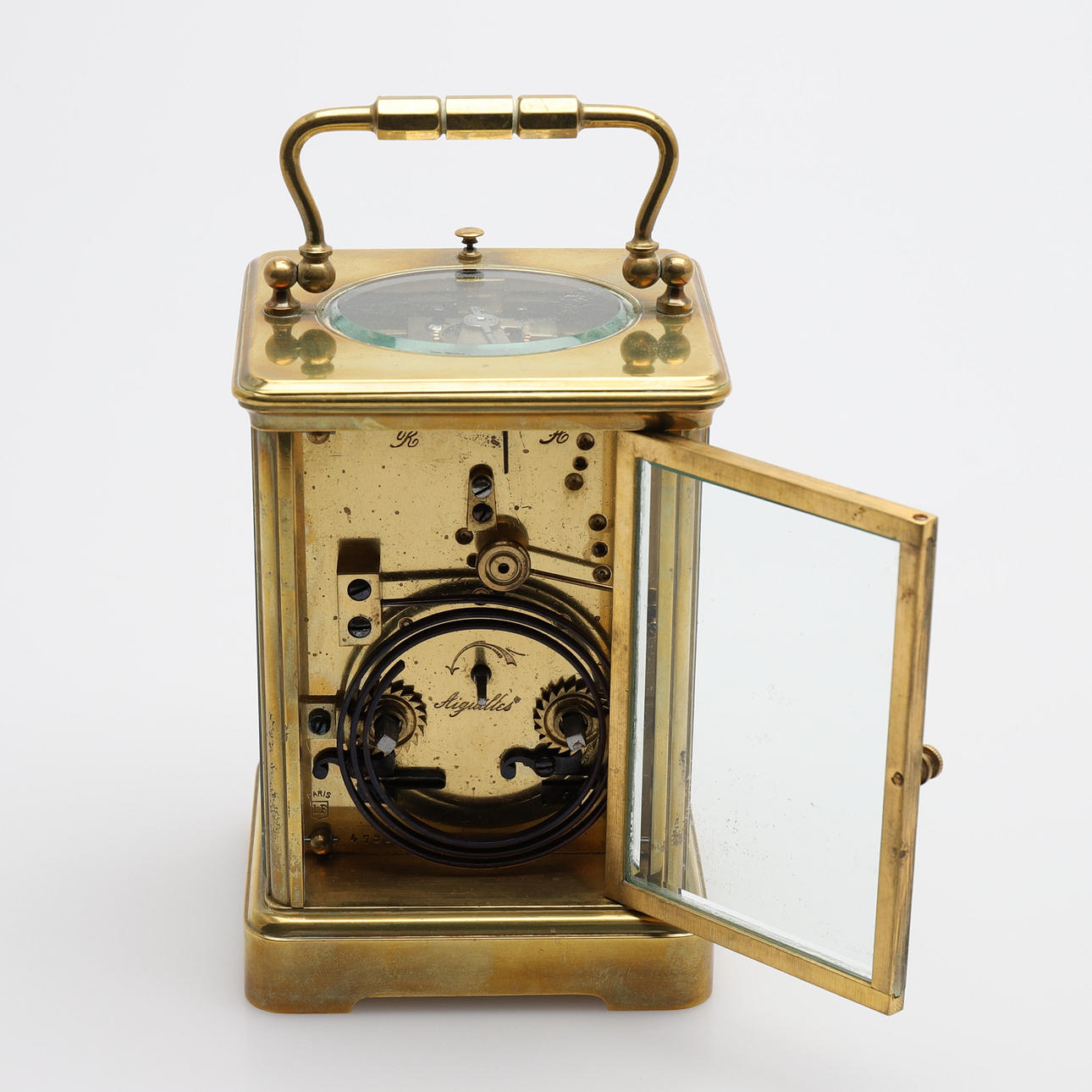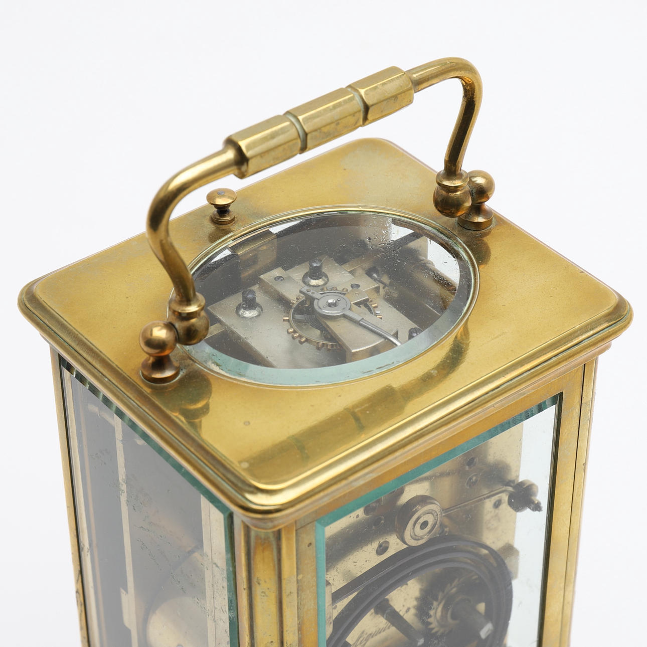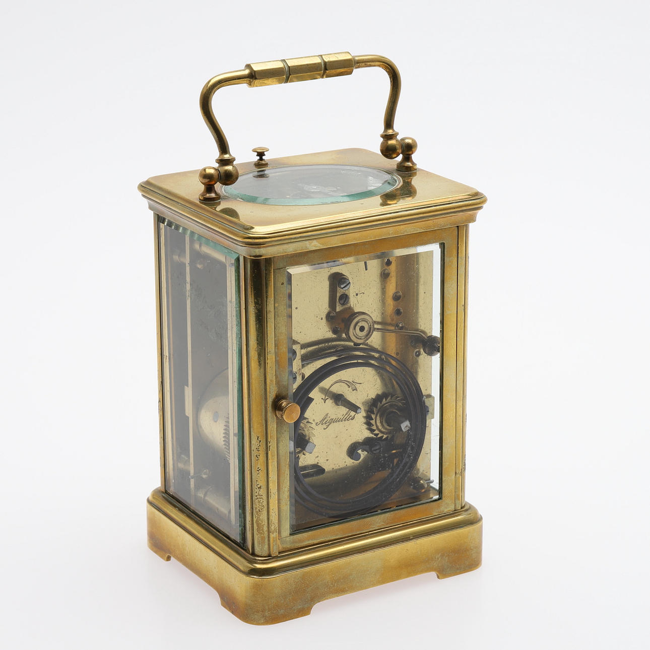 Med grand reveil, med fodral av mässing, omkring år 1900, höjd inklusive handtag 17,5 cm.
