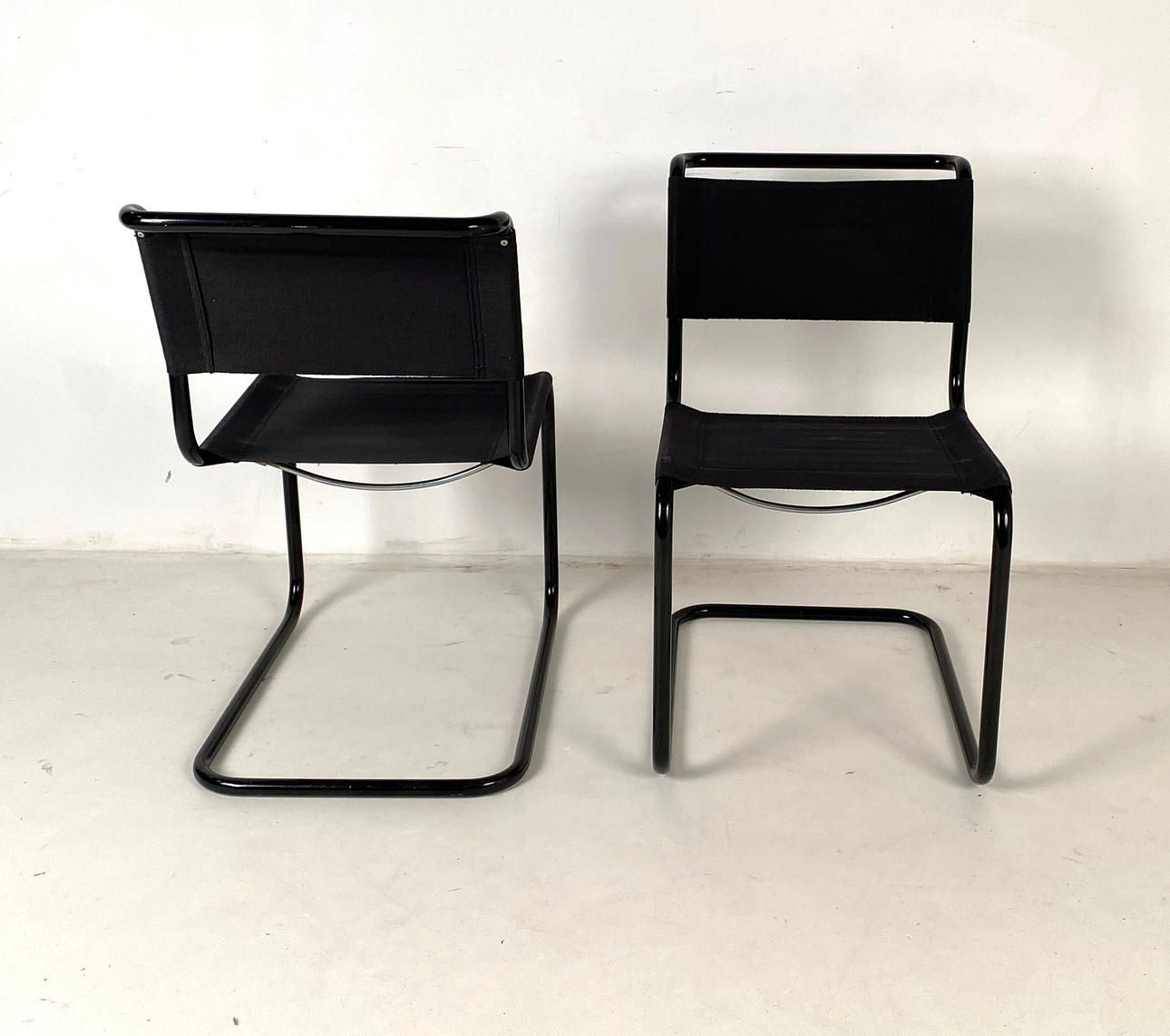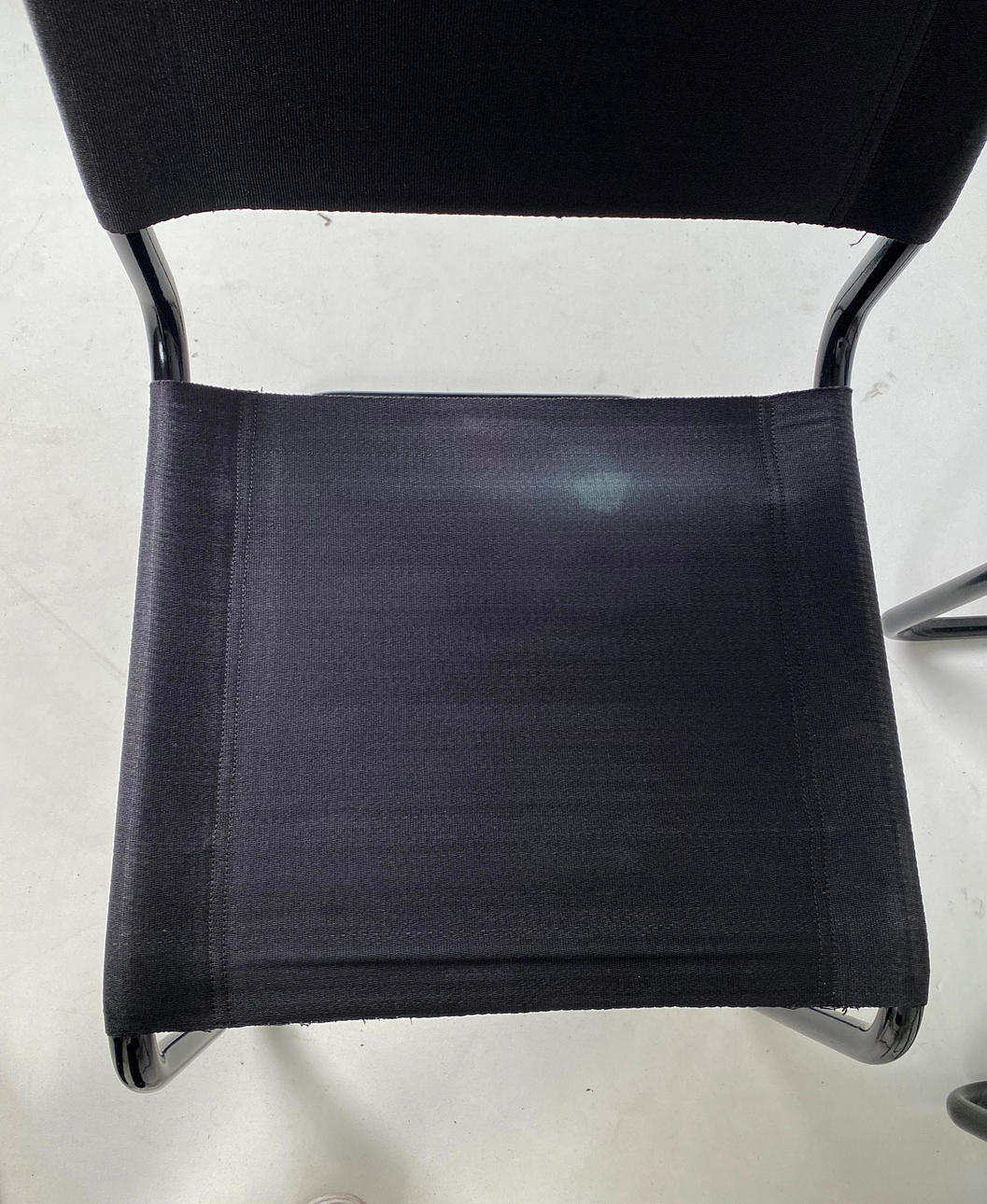 Thonet uppsättning stolar/cantilever stolar. Förkromad rörformig stålram med svart tygbeläggning Höjd 83.5 cm, bredd 48,5 cm, djup 65 cm.
