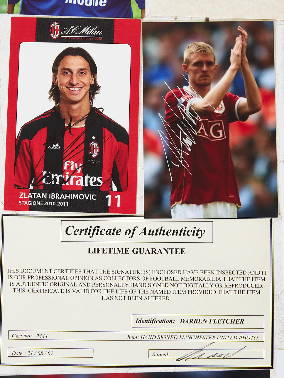 FOTBOLL - FOTOGRAFIER /KORT MED SIGNATUR. Ca 10 st fotografier och kort med signatur. Ca 15x10 - 25x20 mm. Några med "äkthetsintyg".