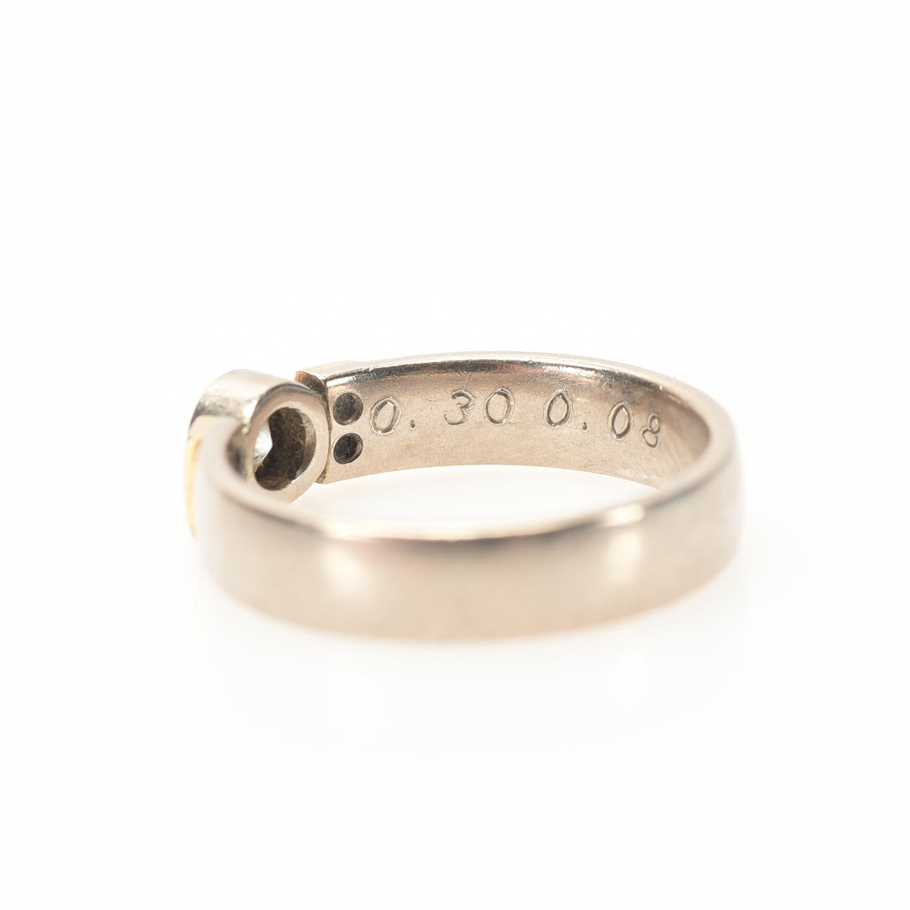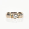Gulddetaljer, mittsten med en briljant 0.30ct sidostenar (enkelslipade diamanter) samlat 0.08ct. Top Wesselton (G) Klarhet: Vs. Diamanter totalt: 0.38ct. Ringst.54/17,25 VIKT: 5,5 gr. Bredd: 4mm. Stämpel: Bös (Schalins Ringar AB).