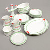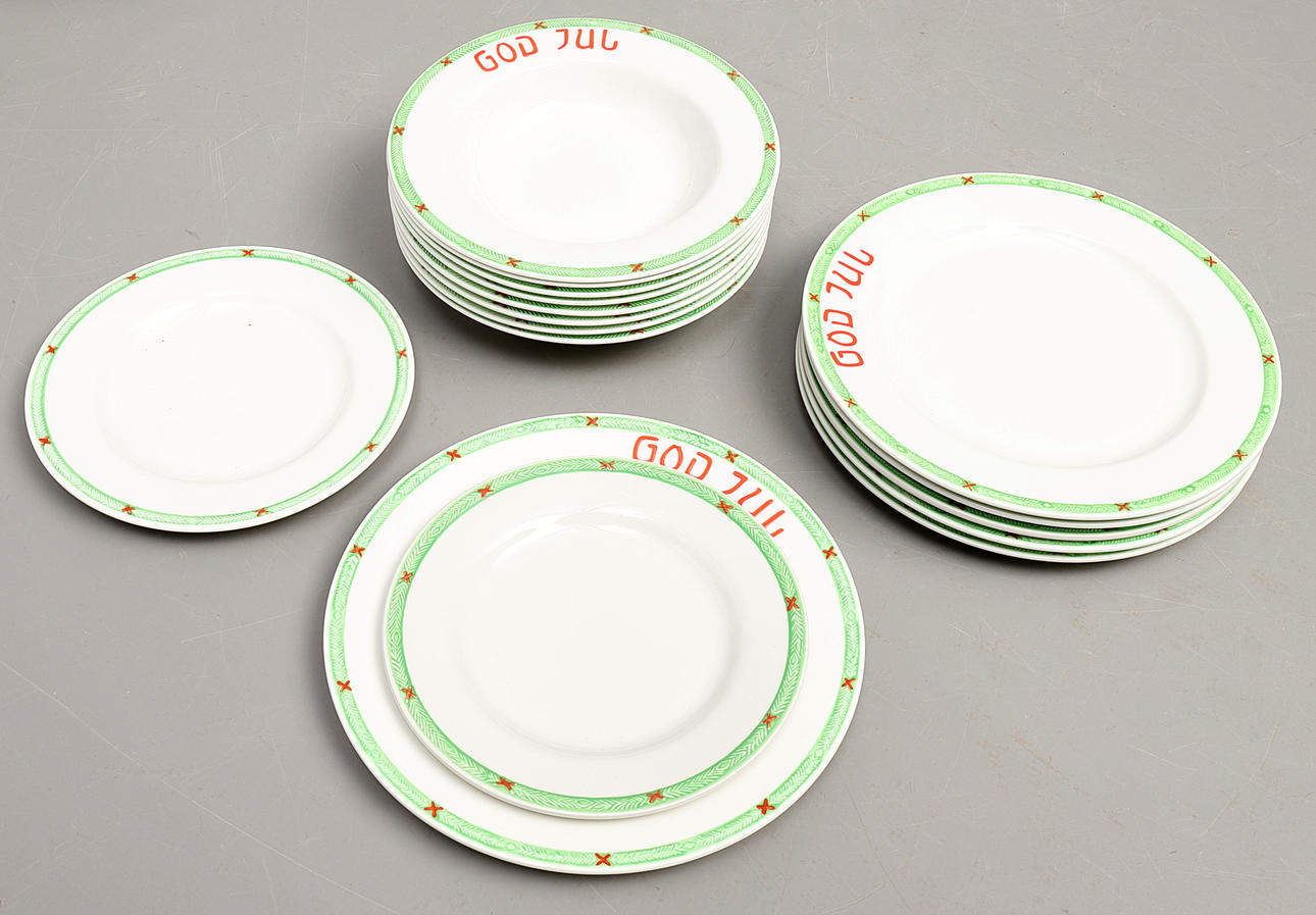 Bestående av: kandelabrar, 2 serveringsfat, 2 kanna, 1 ytterfoder, 6 mattallrikar, 8 djupa tallrikar, 2 assietter.