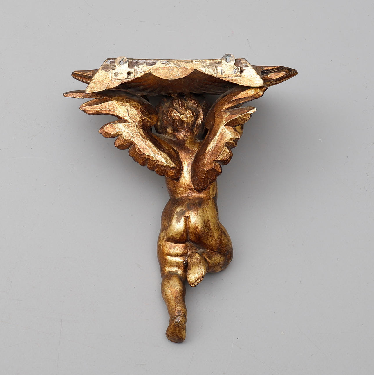 Med träskuren och förylld amorin uppbärande snäcka, höjd 34 cm.