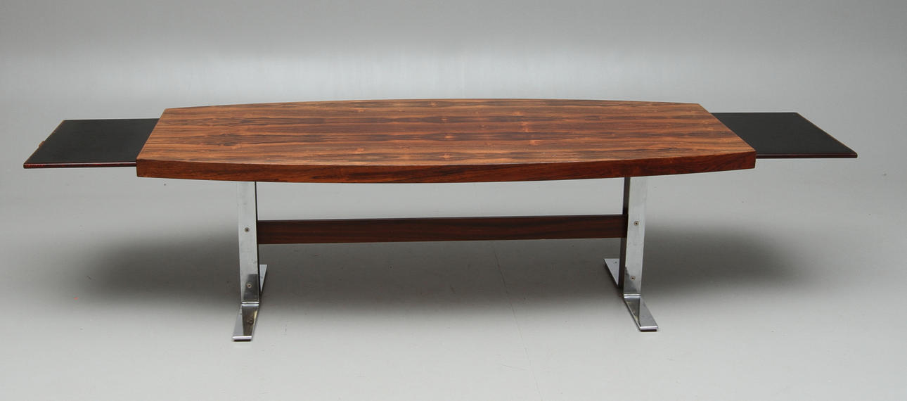 Utdragbara skivor, vitmetall underrede. Längd 160, bredd 69,5, höjd 51 cm. Utdragsskivor längd 2 x 29 cm.