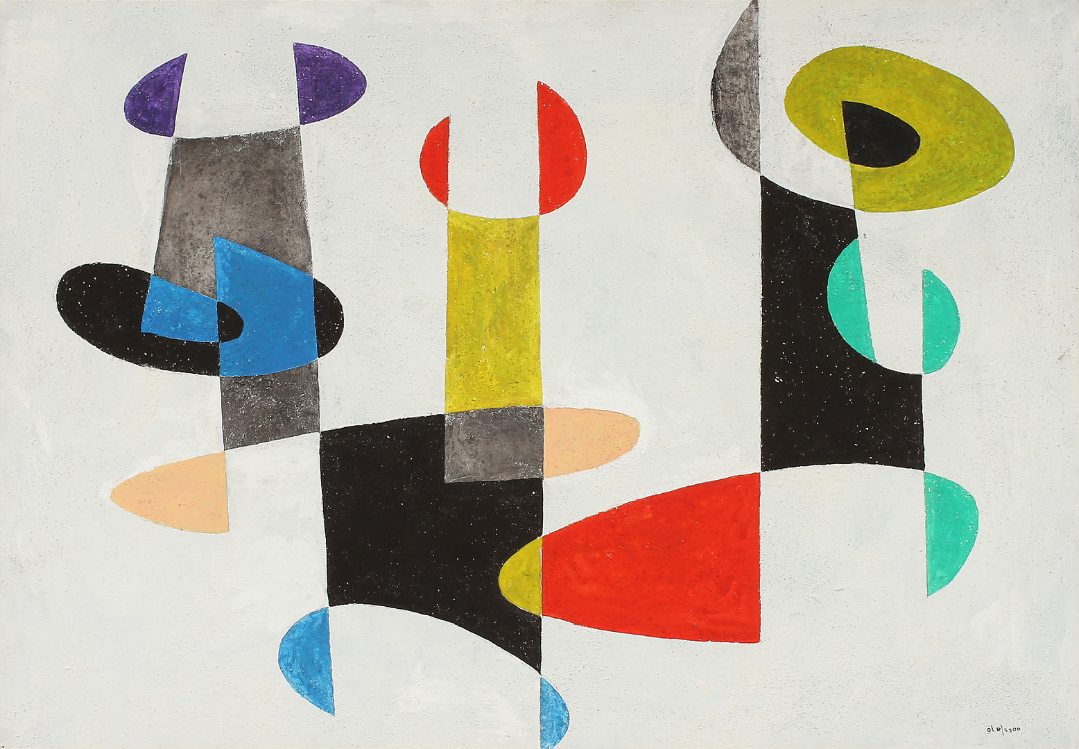 192118. PIERRE OLOFSSON (1921-1996). "Trio". Tempera på pannå.