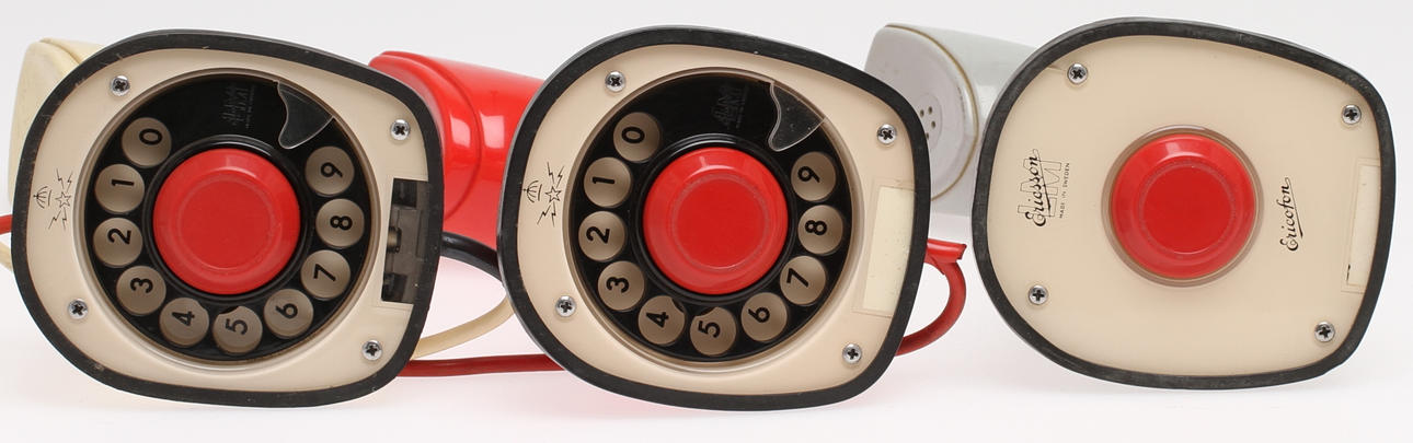 19229. KOBRATELEFONER ERICOFONER, 3 st, röd, grå och benvit.