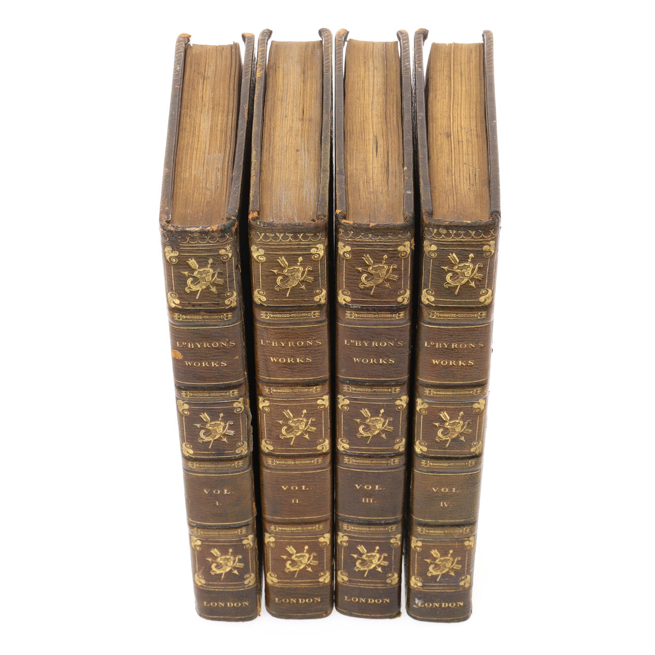 London: John Murray, 1823, fyra volymer, frontispiece, full grön rak korn marocko, med förgyllda gränser och troféer till ryggar, t.ex.,
