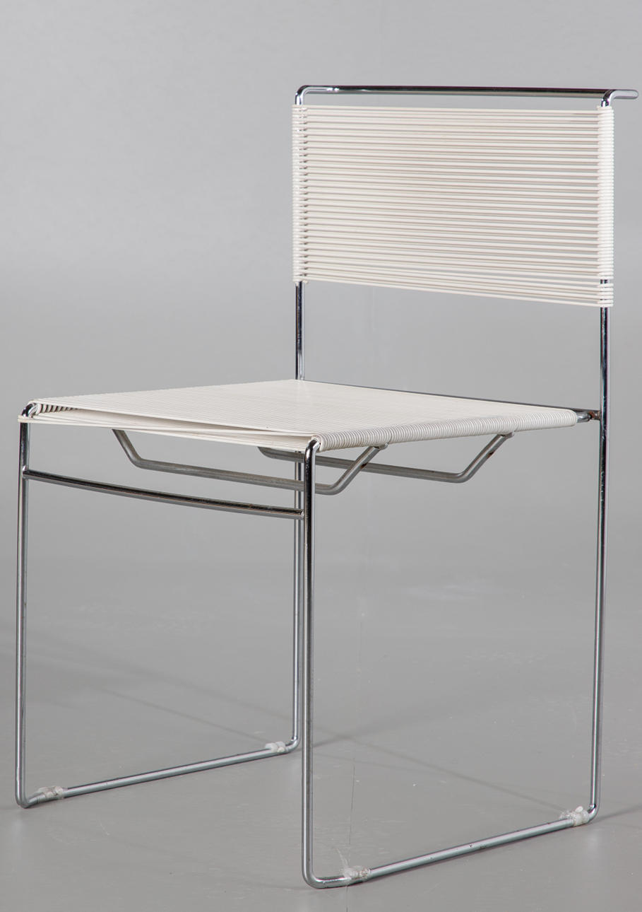 Design från 1970-talet, Italien. Vitmålad ståltrådskonstruktion, täckt med vit plasttejp. HxBxSH: 80x47x45cm.