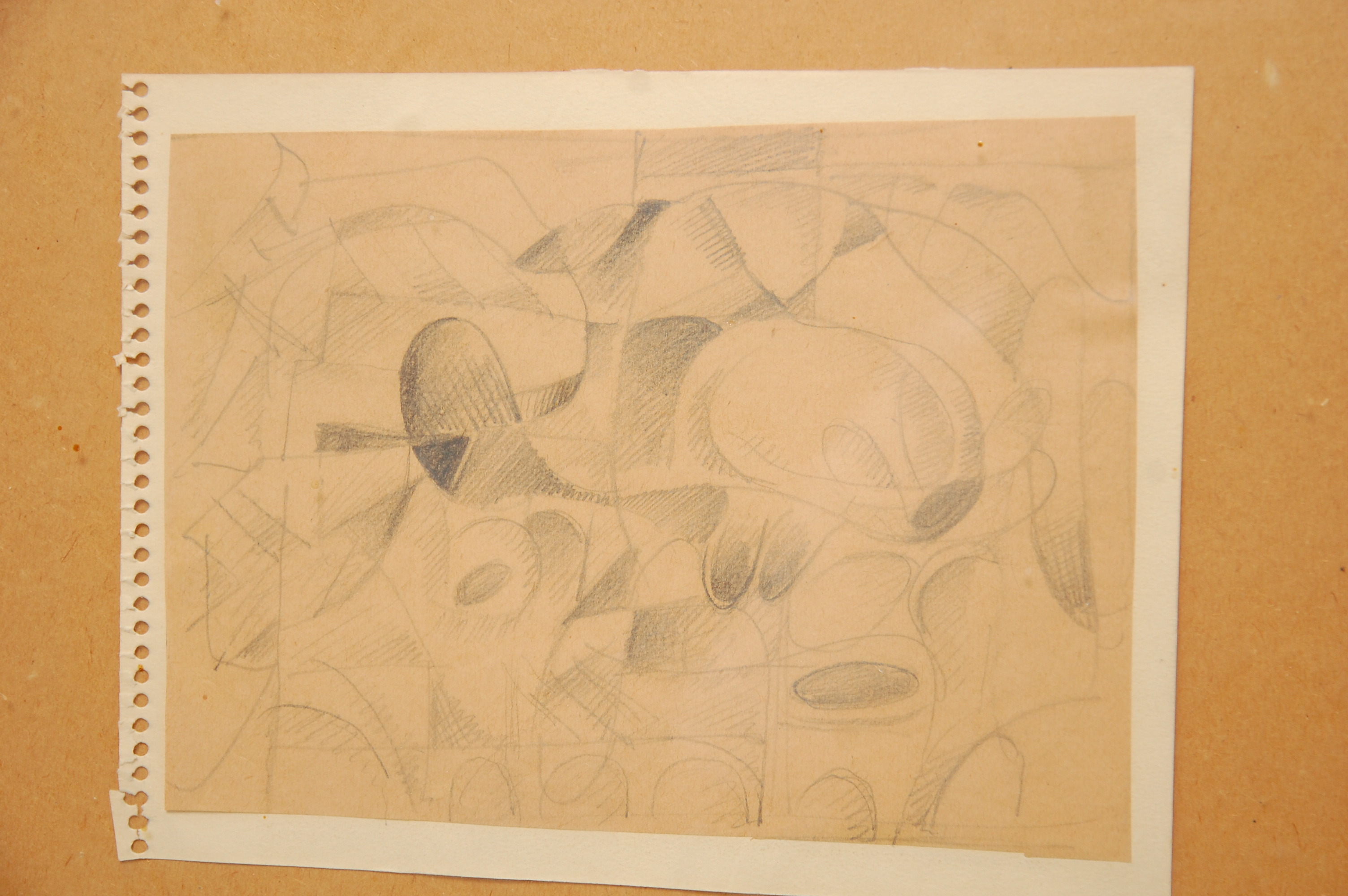192598. GÖSTA ADRIAN-NILSSON. TILLSKRIVEN. blandteknik, komposition ur skissblock.