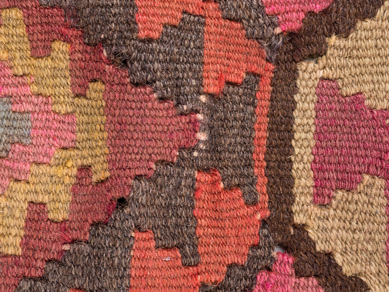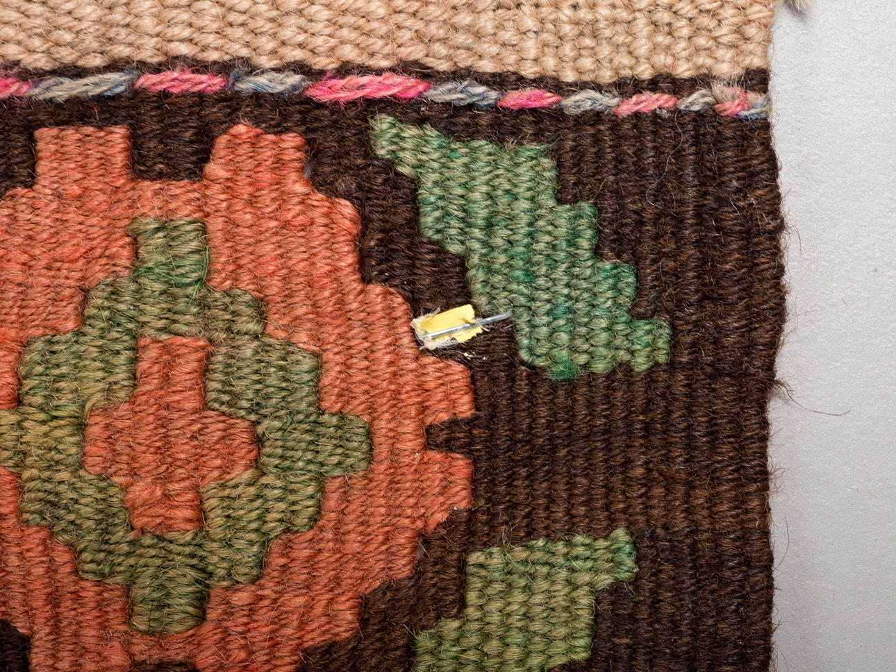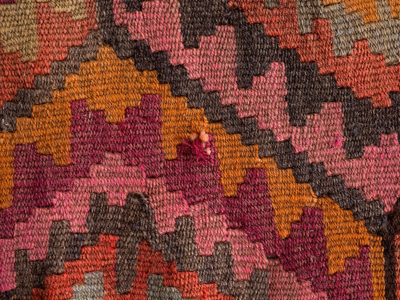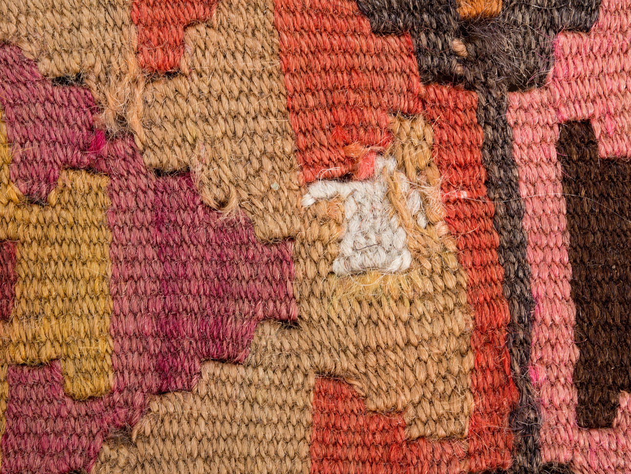Kelim/matta, tyg. Handvävd matta av garn och tråd med geometriskt rutigt mönster i polykroma färger, kantad på långsidorna, 200x400cm.