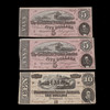 3 st sedlar: två st 5 dollars och en 10 dollars.