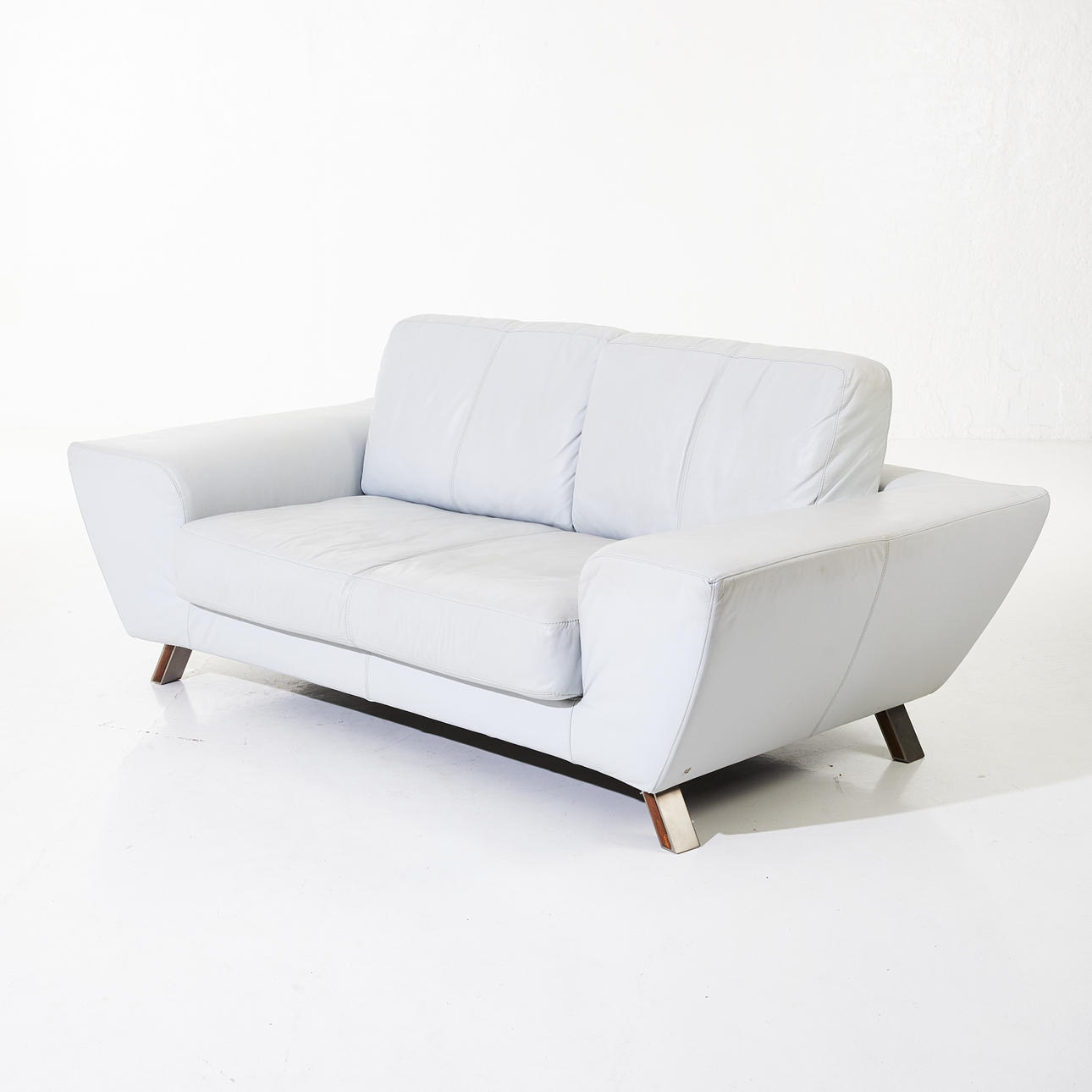 SOFFA, skinn, stålben, lösa sittkuddar.