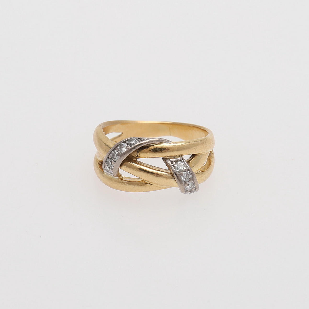 18k rött och vitt guld med åtta diamanter om sammanlagt 0,18 ct, stämplad Heribert Engelbert, Stockholm 1995, storlek 17, vikt 6,3 gram.