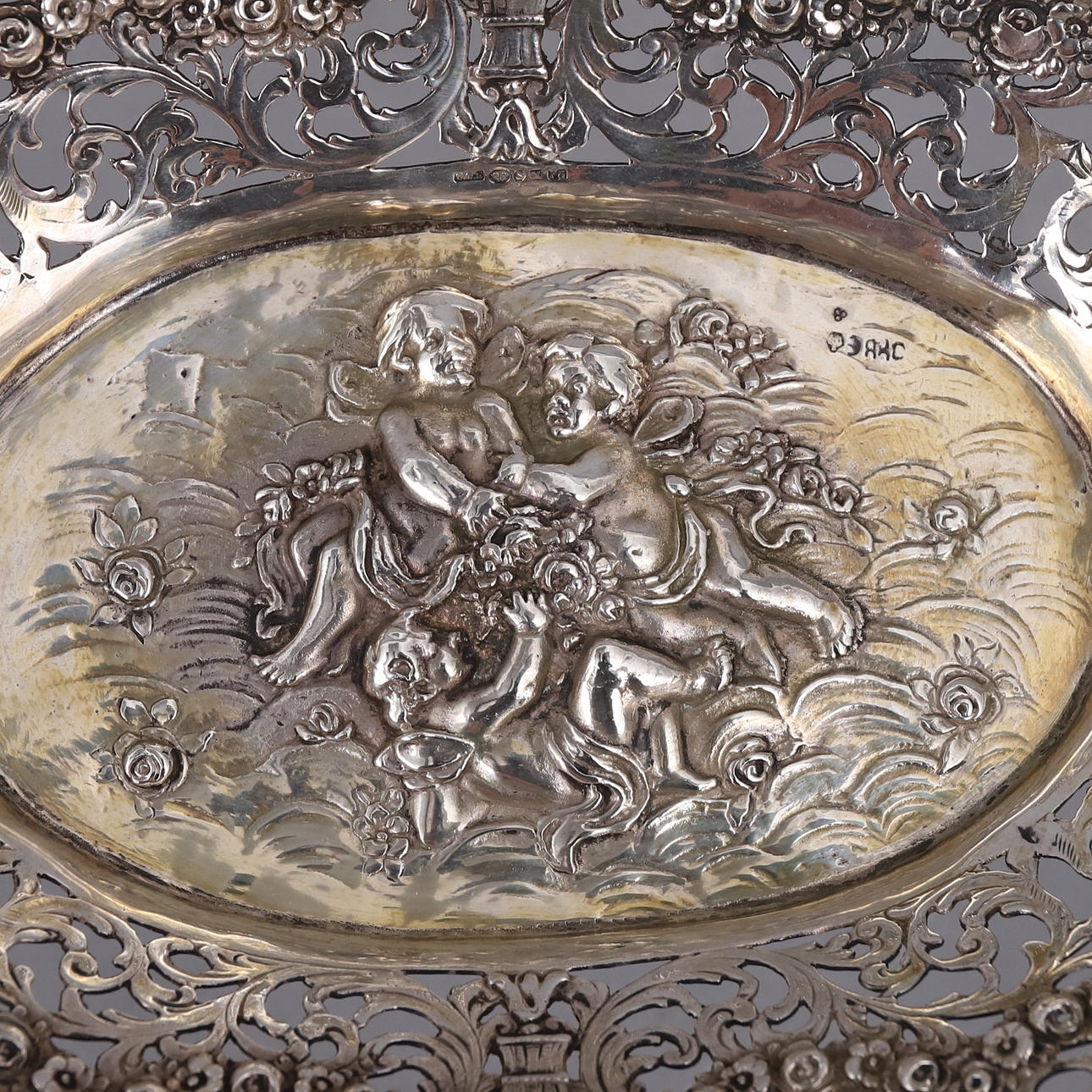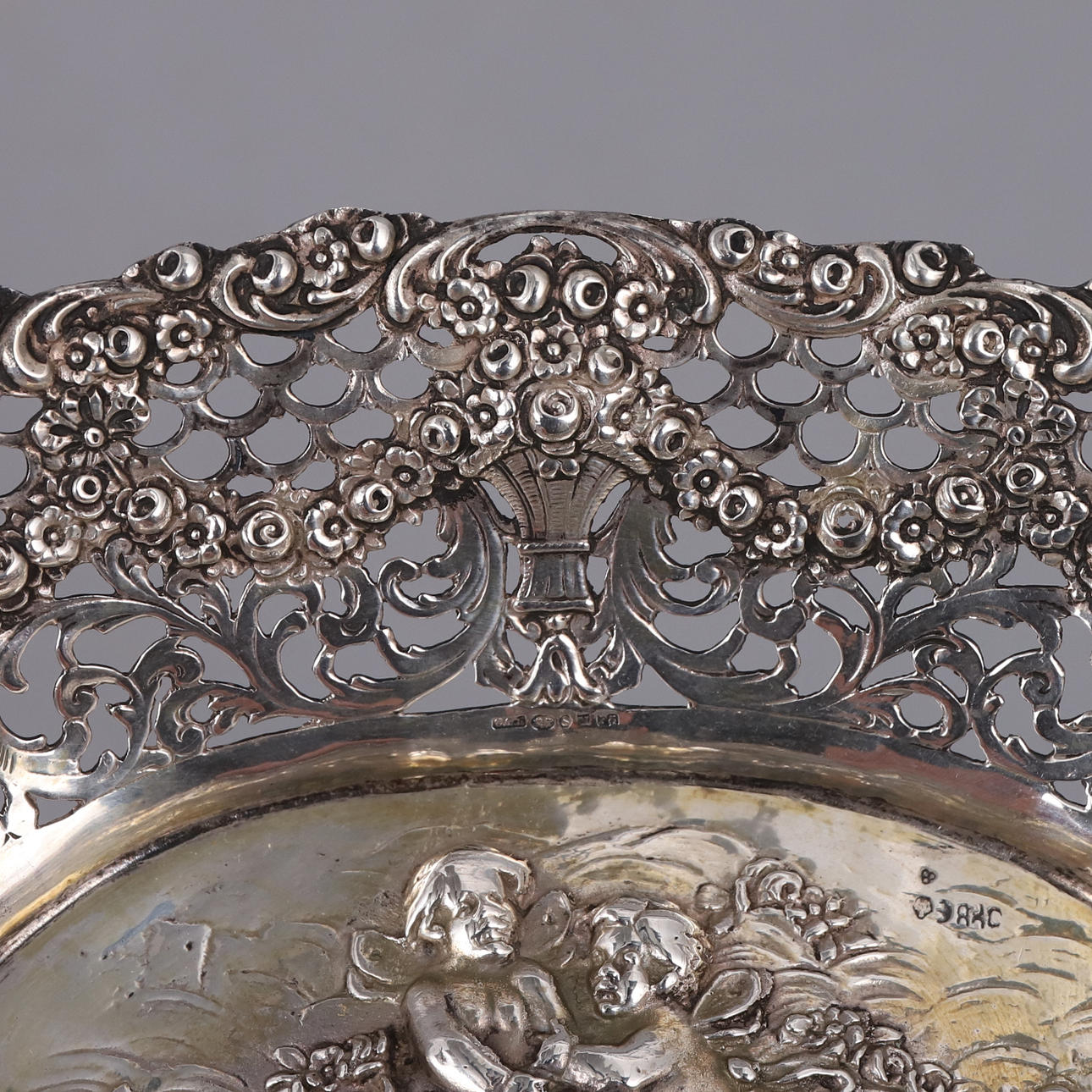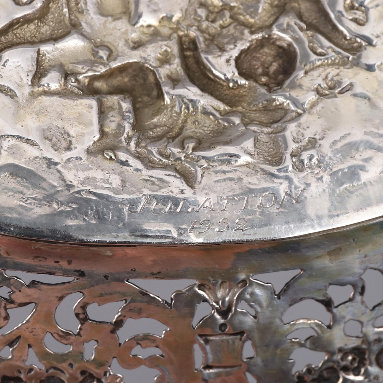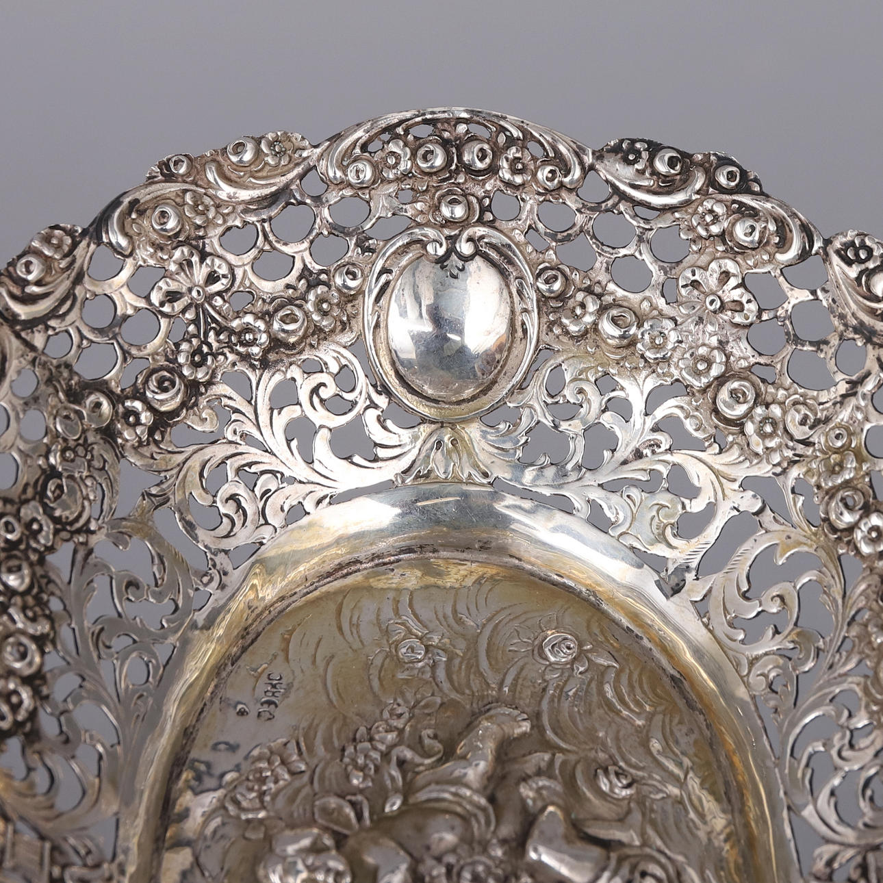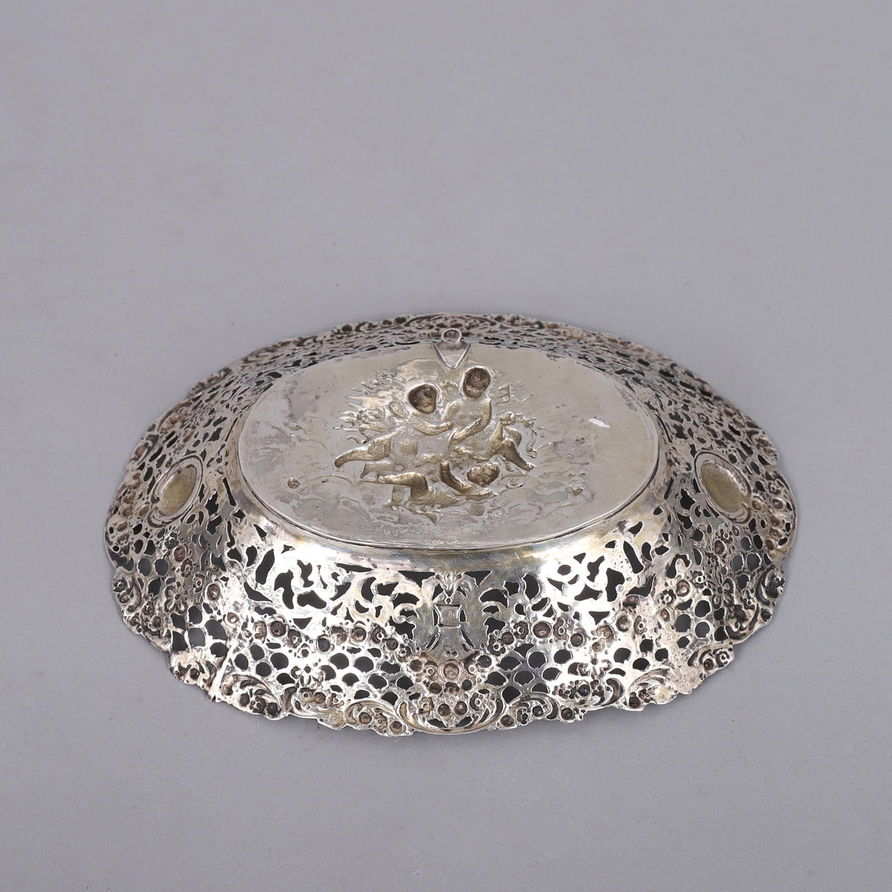 Skål med genombruten dekor, stämplat CGH för CG Hallberg, kattfot samt F8 (1932)