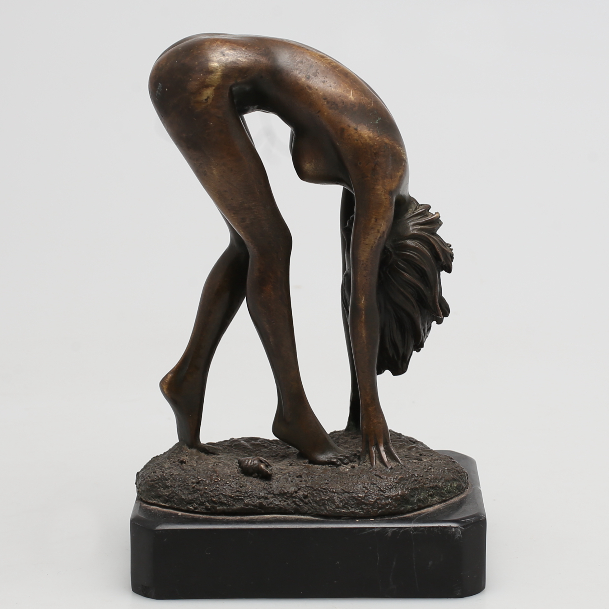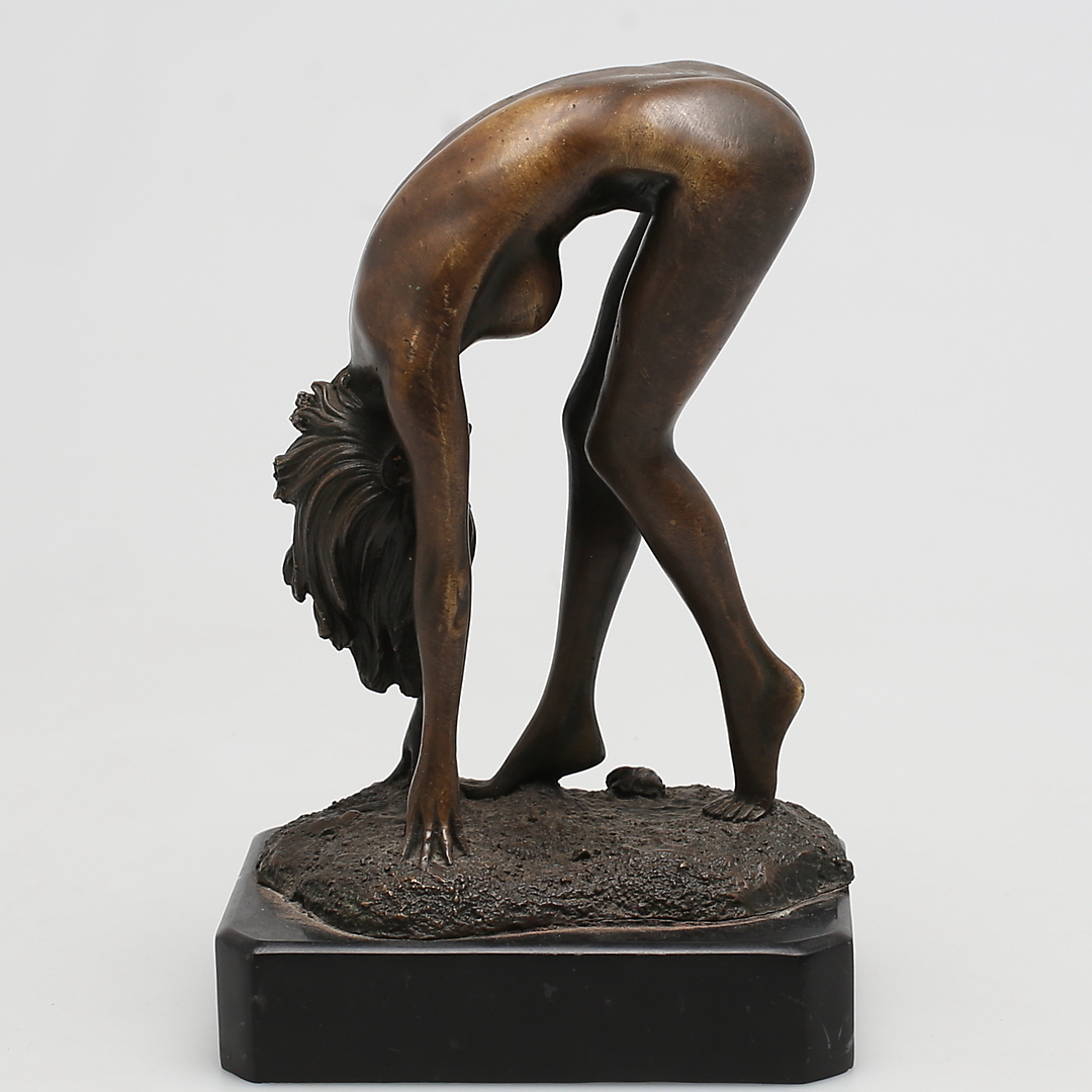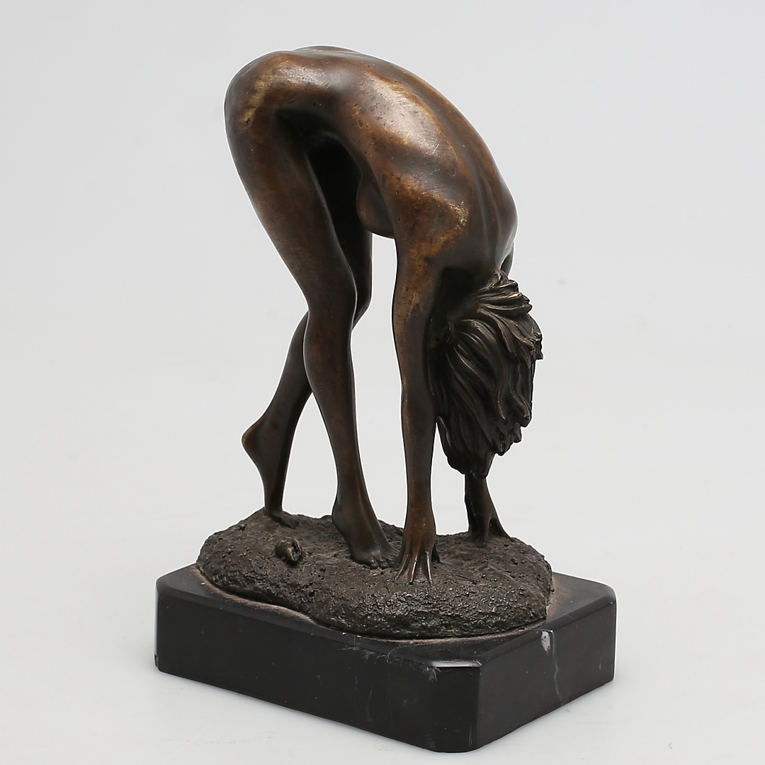 193841. OKÄND KONSTNÄR. Framåtböjd kvinna, Brons. Osignerad.