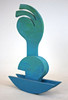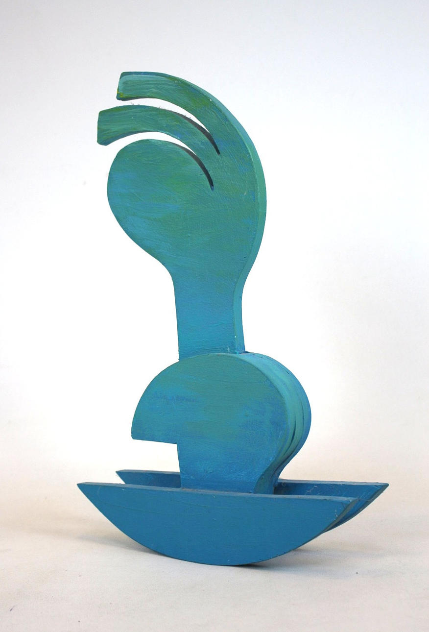 Viktor Popov (1952), skulptur, 'grönblå, 'helt skulpterad, gjord av trä, handdekorerad, Mått ca.: H. 37 cm, D. 22 cm, B 6 cm.