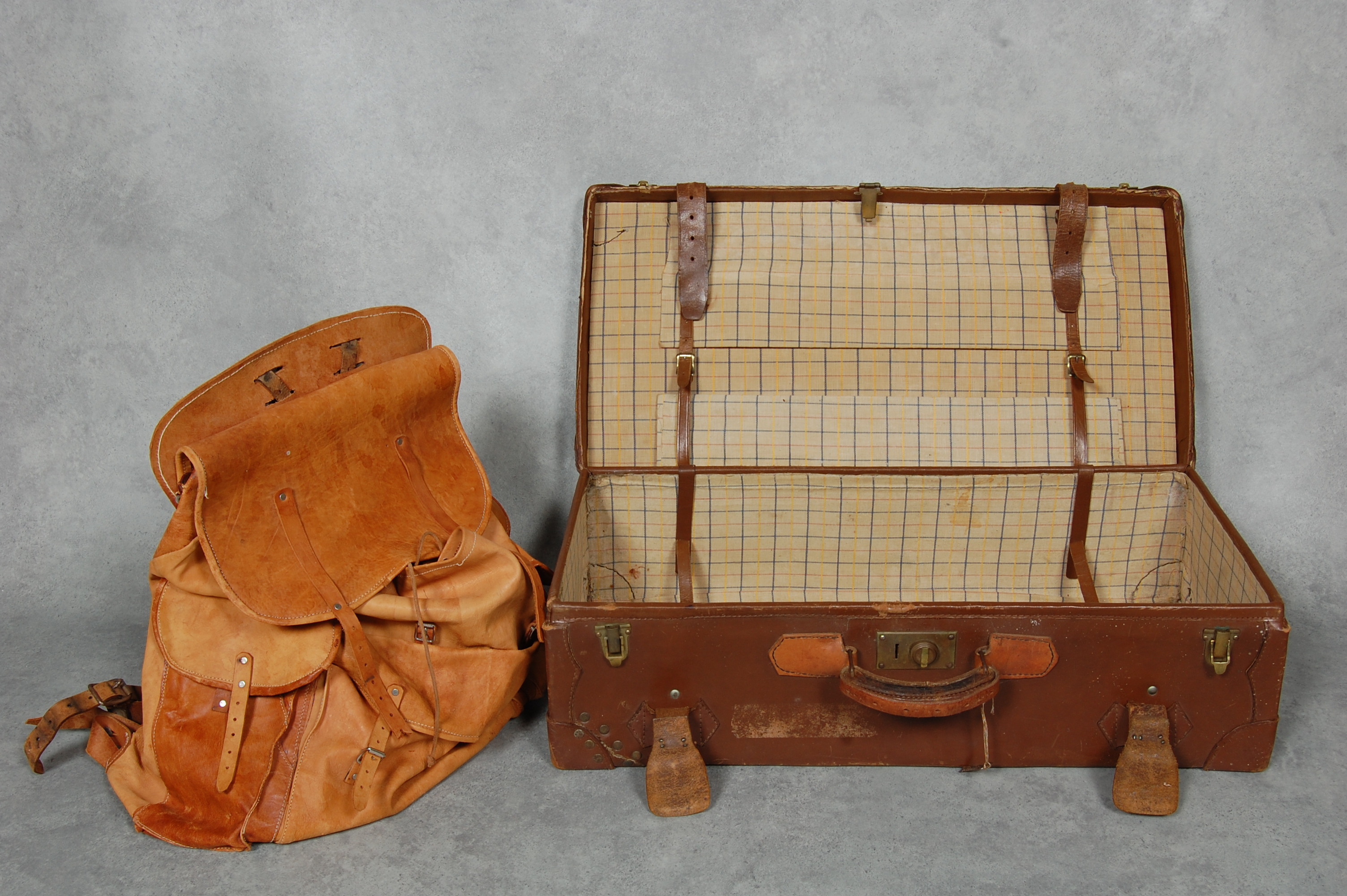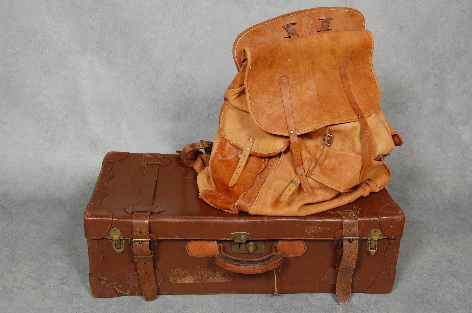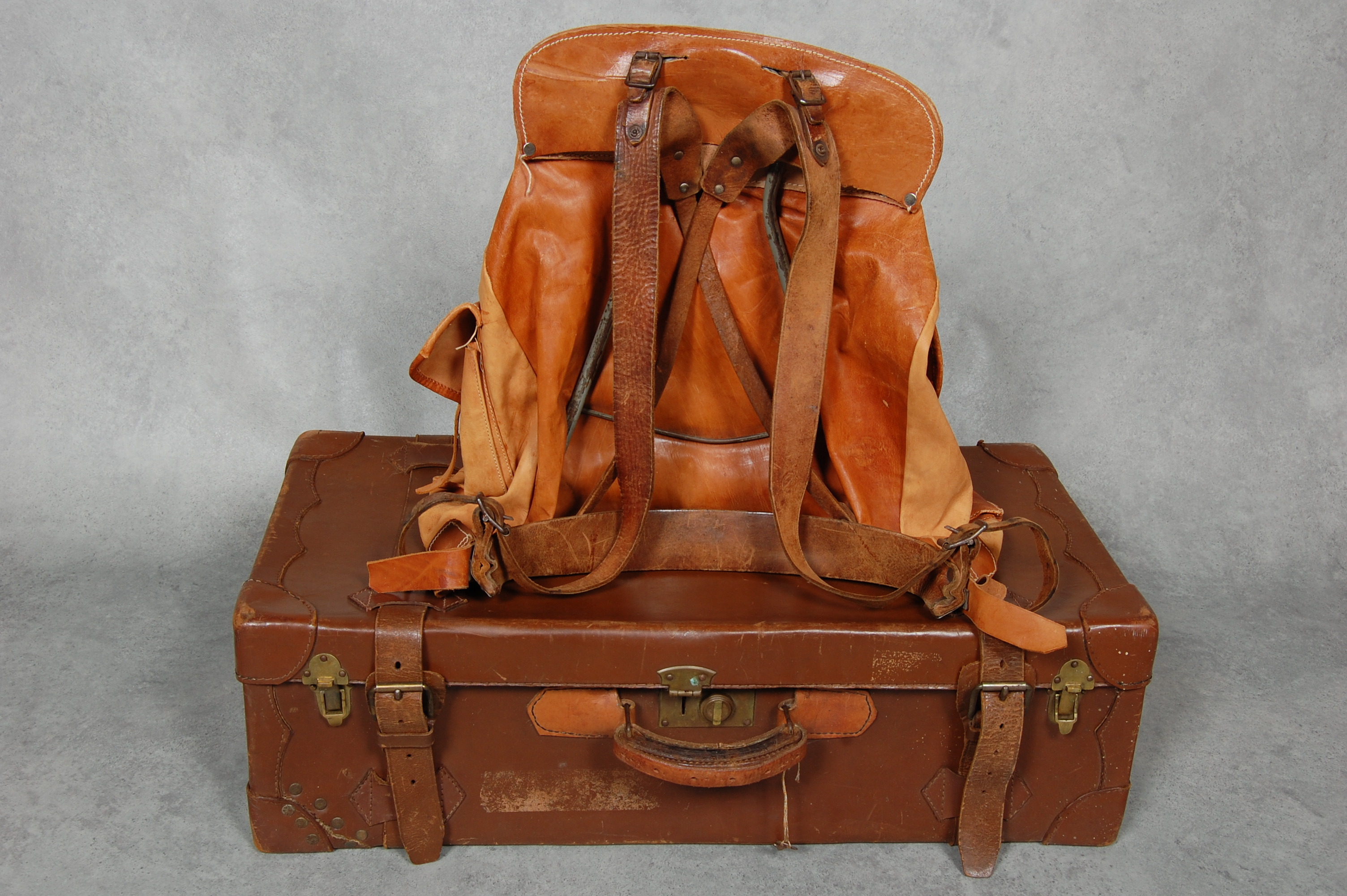 19429. KOFFERT / RYGGSÄCK, älgskinn.