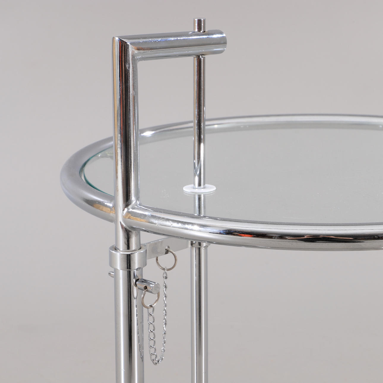 1945609. BORD, glas och metall, efter Eileen Gray.