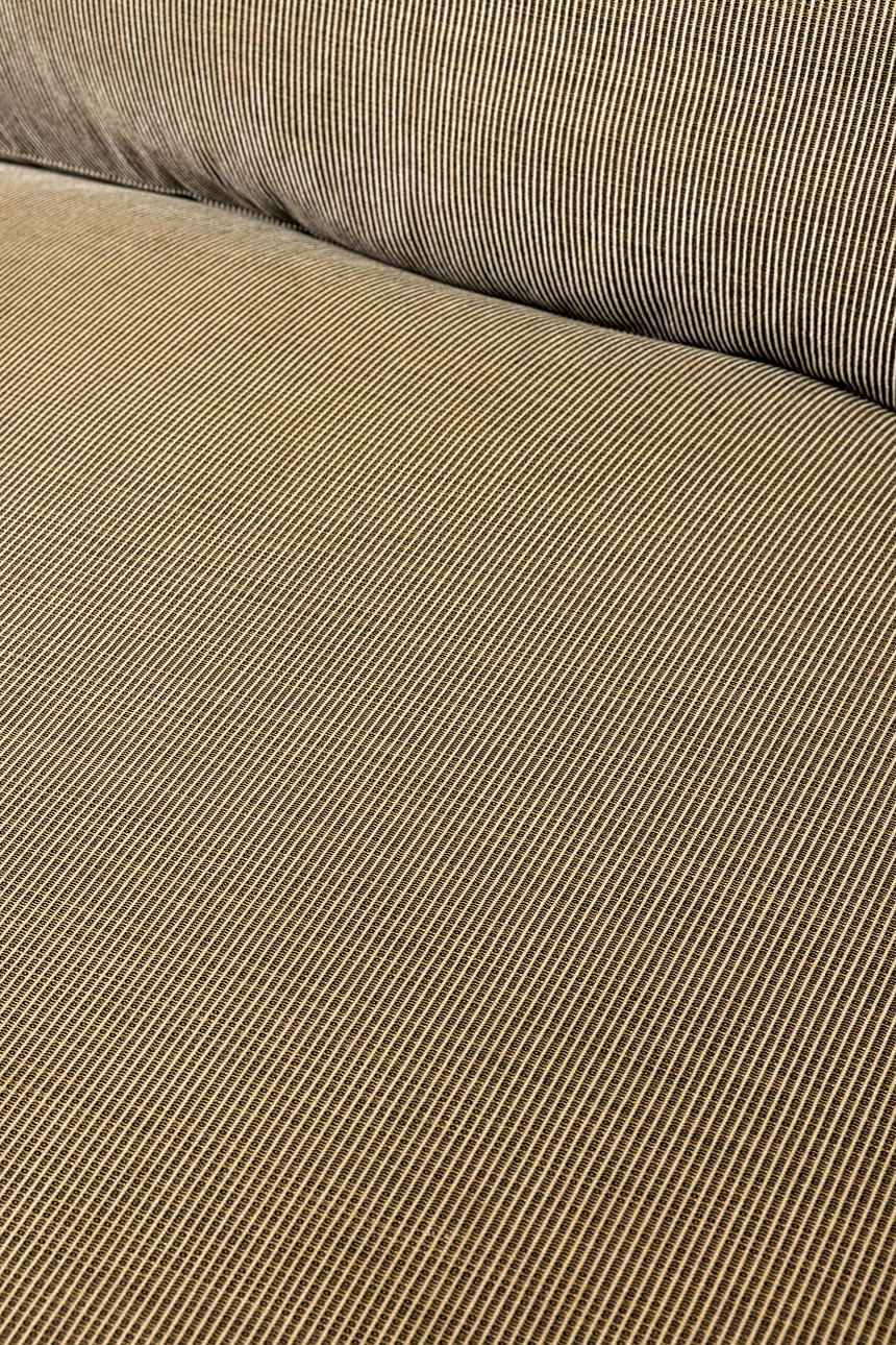 Textilklädd. Dunfyllda lösa plymåer i rygg och sits. Längd 210 cm, bredd 106 cm.