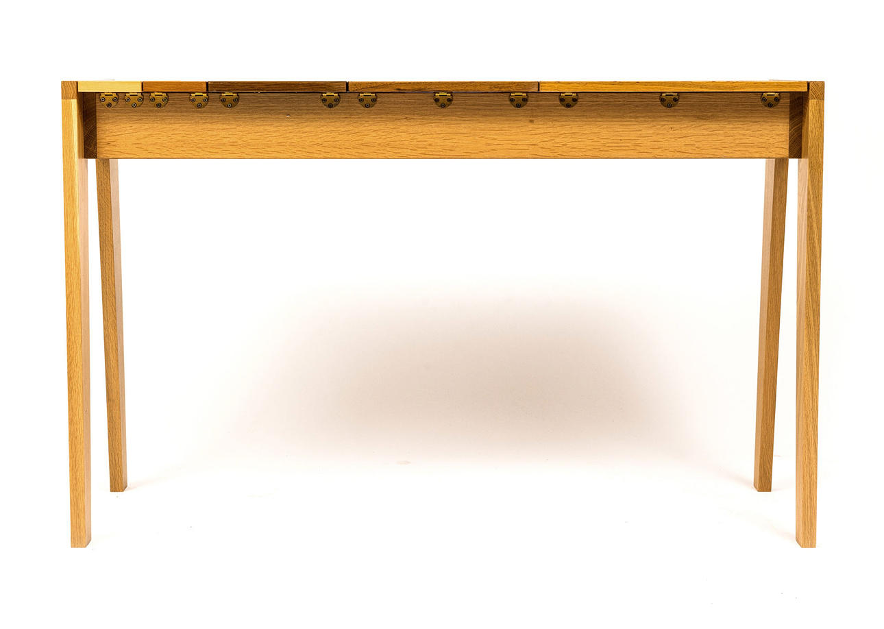 B.la bok och ek, förvaring under uppfällbara skivor. Längd 119 cm, bredd 45 cm, höjd 74 cm.