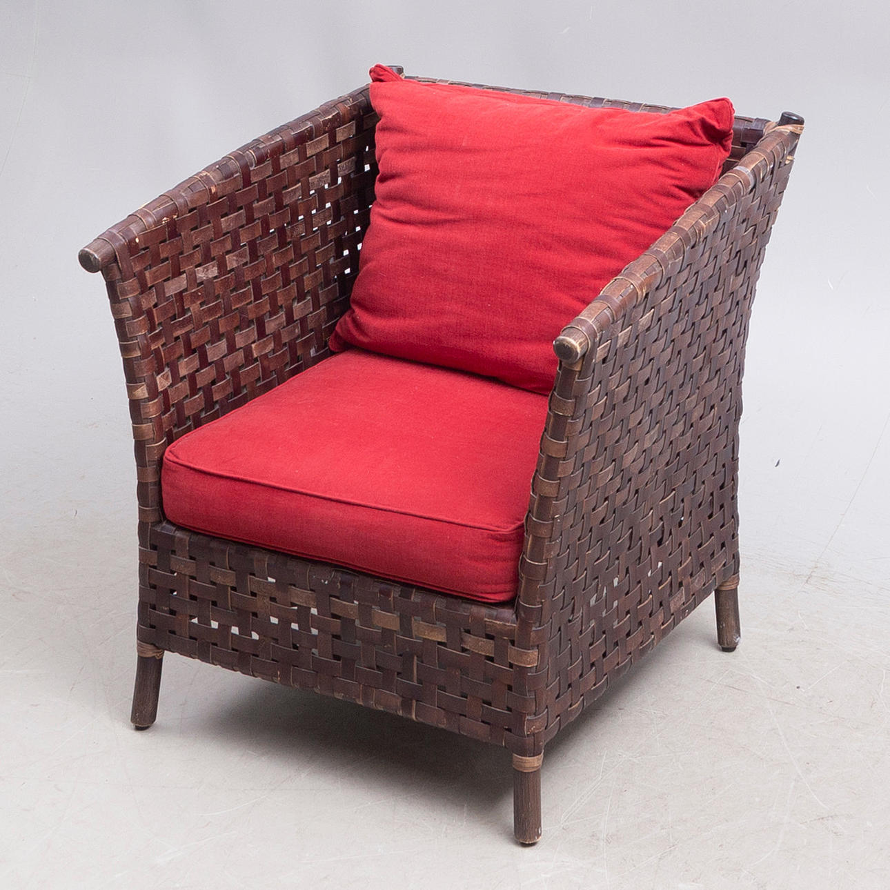 1956782. FÅTÖLJ, flätad läder, Newport, modern.